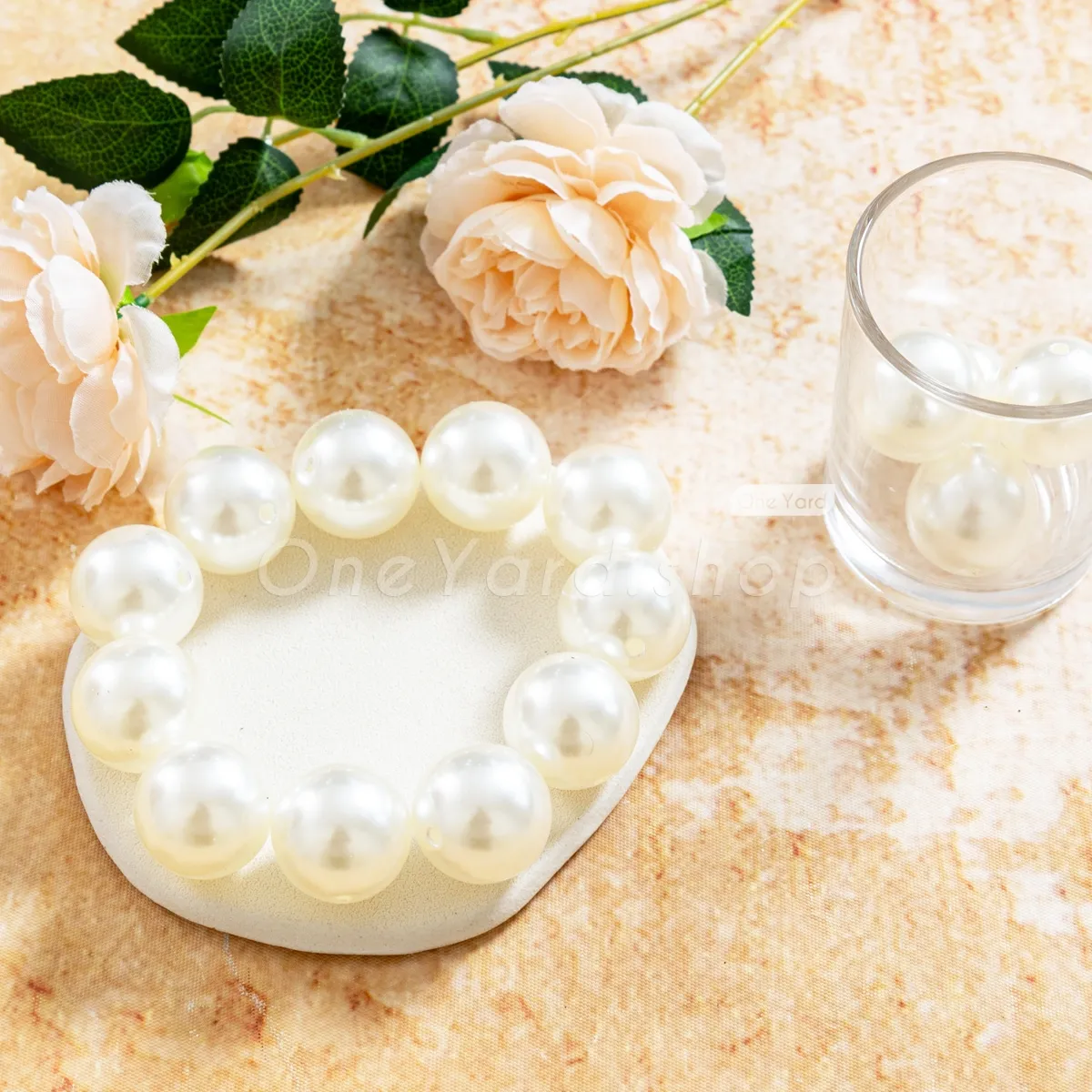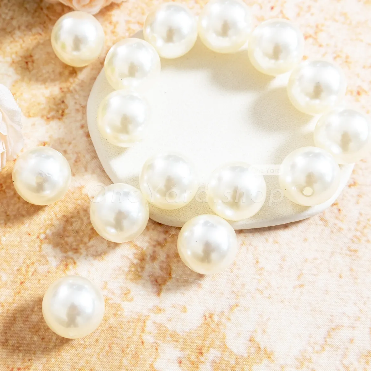 These oversized 30mm ivory plastic pearls are designed to provide the classic elegance of traditional pearls with a versatile construction ideal for bold statement pieces. Crafted from premium resin, these 30mm large pearls offer a smooth, lustrous finish that mimics the glow of natural pearls. It's perfect for creating focal points in jewelry, couture, or home decor. The pearl is pre-drilled with a center hole, allowing for easy threading with various cords, wires, or ribbons for diverse crafts.