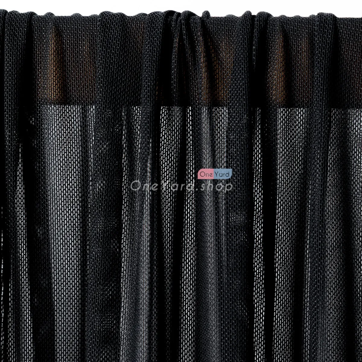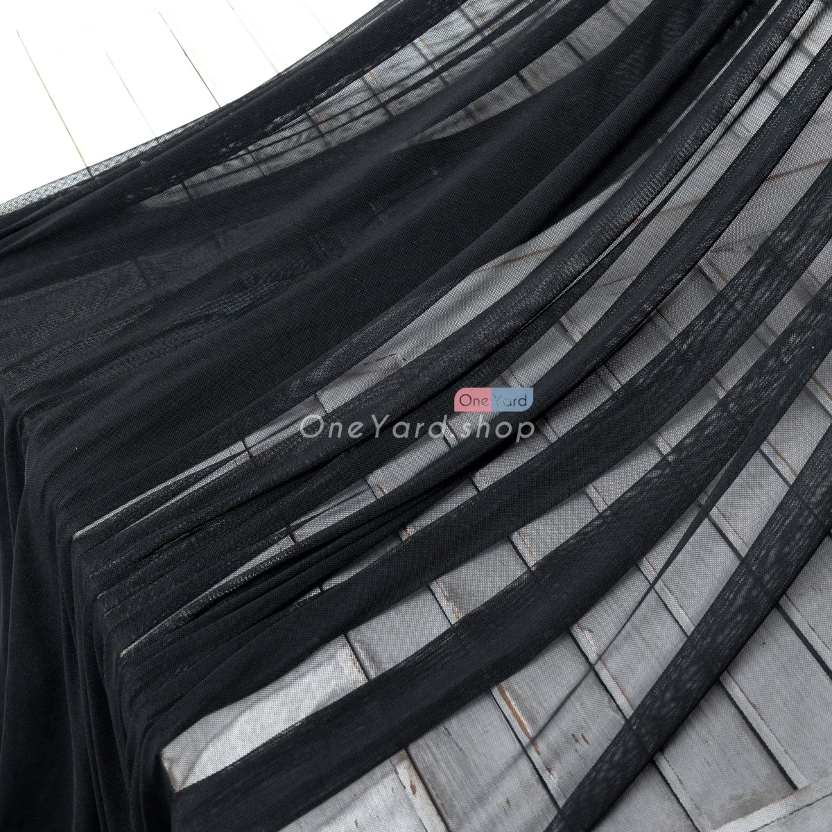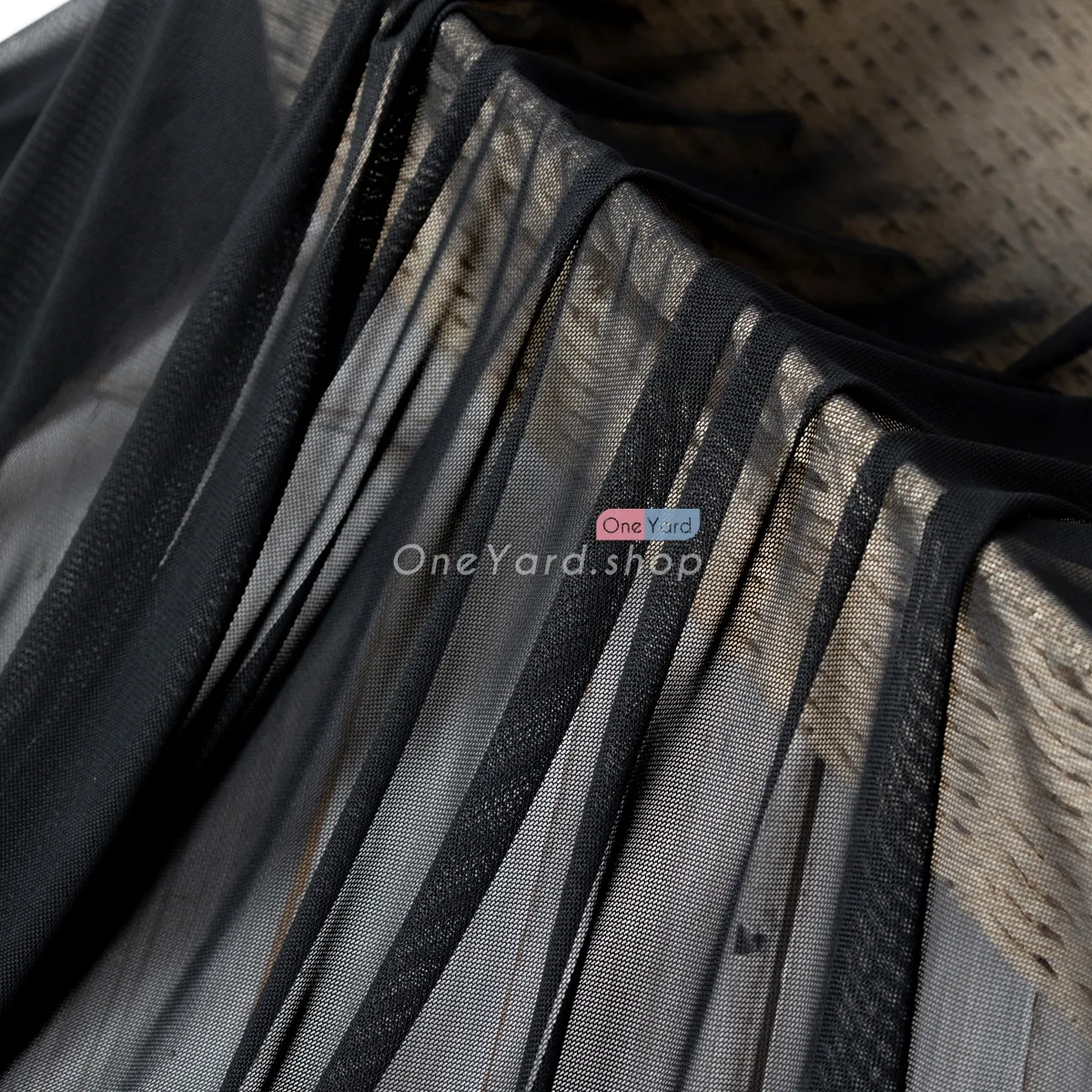 Excellent 4-way stretch black lightweight jersey mesh fabric by the yard. The black spandex net tulle material is soft, sheer, 4-way high elastic, and skin-friendly.