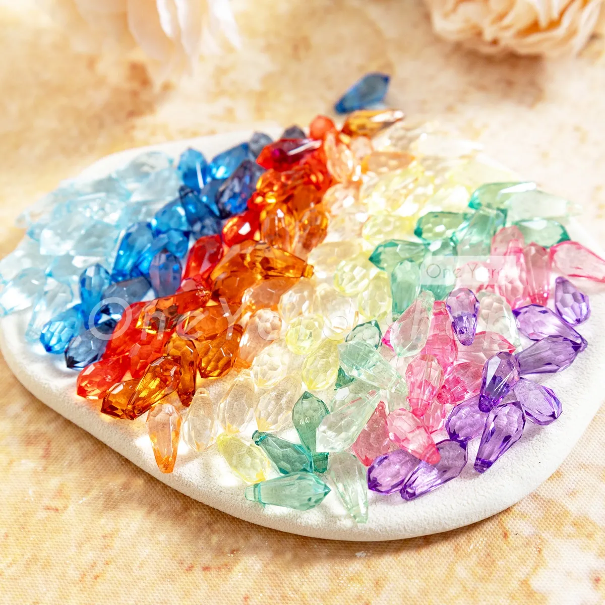 Create high-impact, dynamic movement without the heavy burden! Our 8x18mm colorful lightweight teardrop drop beads are the ultimate solution for designers looking to craft voluminous, swaying fringe details on a budget. Expertly molded from ultra-lightweight plastic, these faceted diamond-shaped dangles offer the brilliant look of cut crystal. These beads are the premier choice for competitive dance costumes, festival/rave wear, theatrical stage outfits, and playful DIY jewelry.