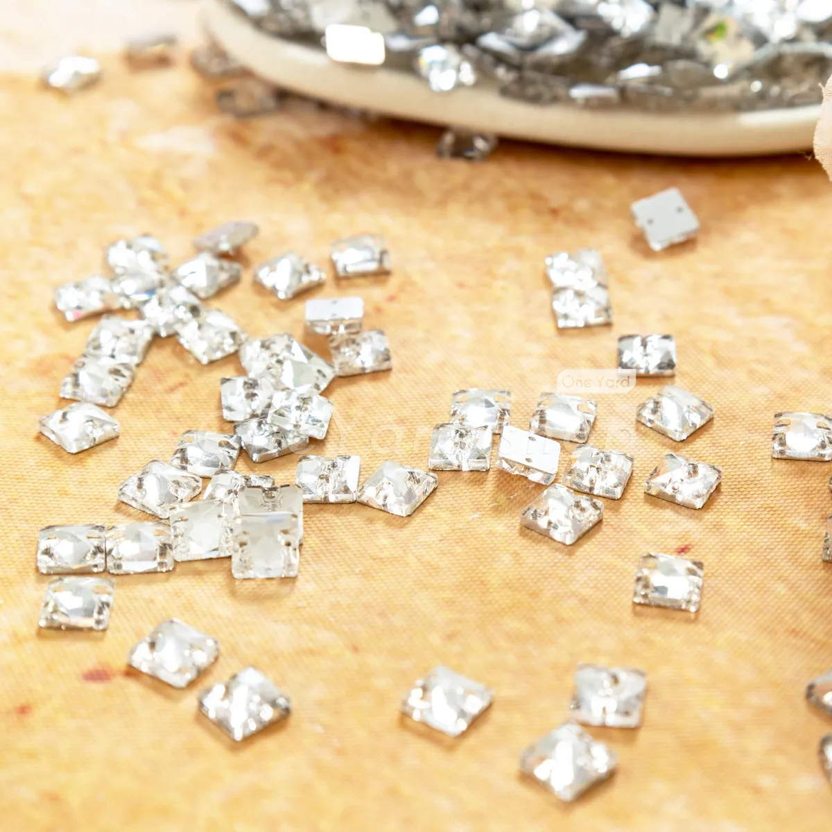 Premium 8x8mm Square Sew-on Glass Rhinestone Crystals