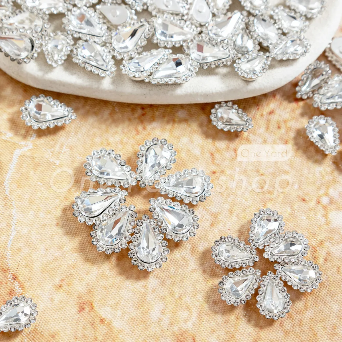 These beaded teardrop-shaped sew-on crystals are crafted from faceted clear glass, offering superior clarity and a diamond-like brilliance. Each stone features sharp, multi-angled facets that maximize light refraction for exceptional sparkle. The glass crystals are in a sturdy silver-tone metal claw base, allowing them to be sewn firmly onto fabrics. Ideal for adding luxurious detail to bodices, waistlines, and hemlines of formal gowns. Perfect for creating custom sashes, headpieces, or embellished veils.
