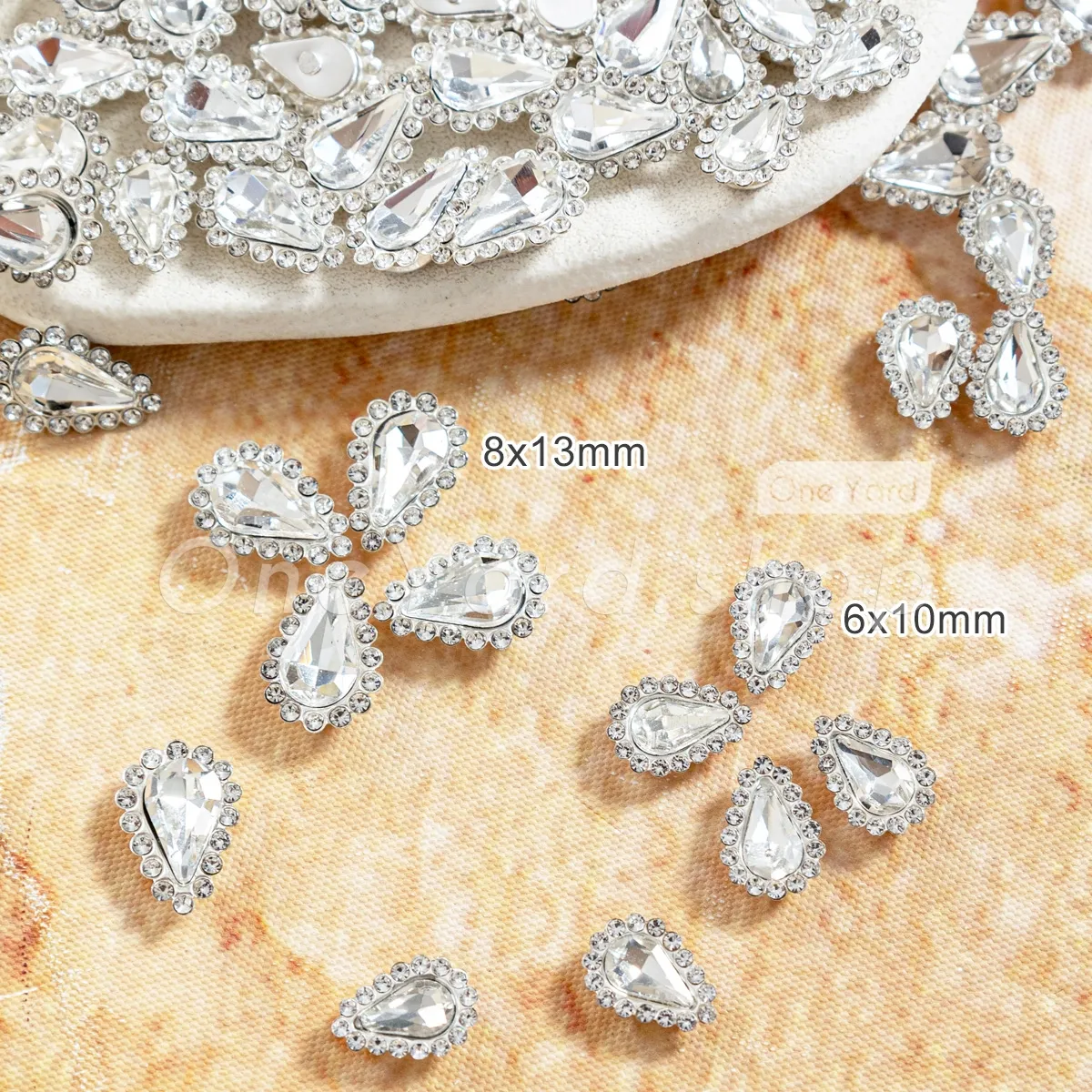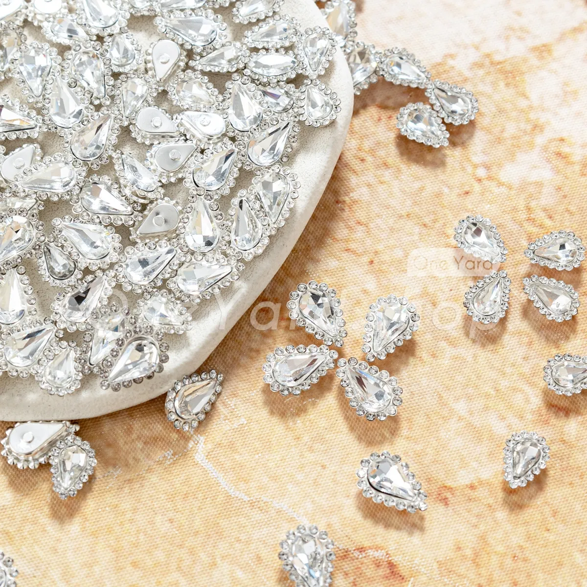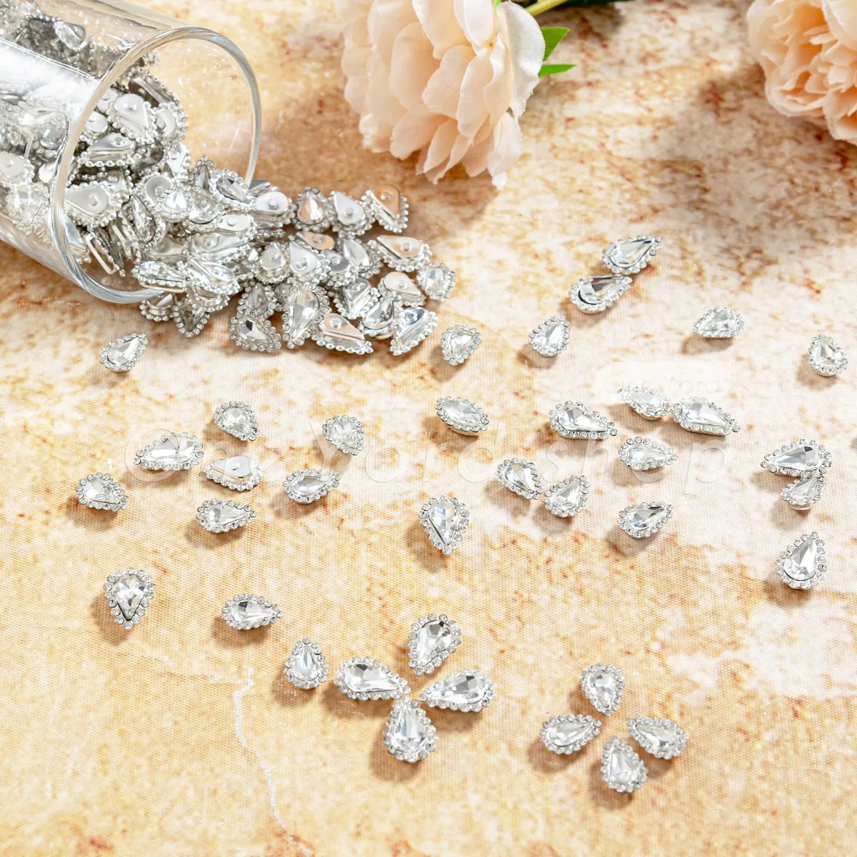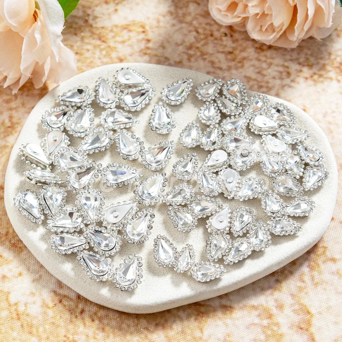 Sparkly Clear Beaded Teardrop Glass Sew-on Crystals