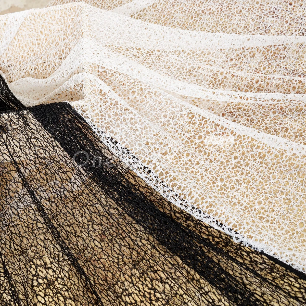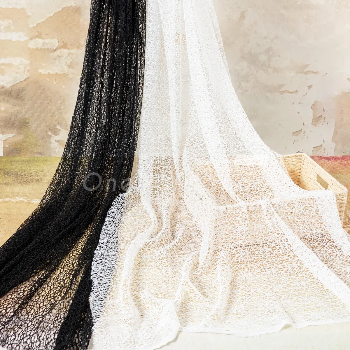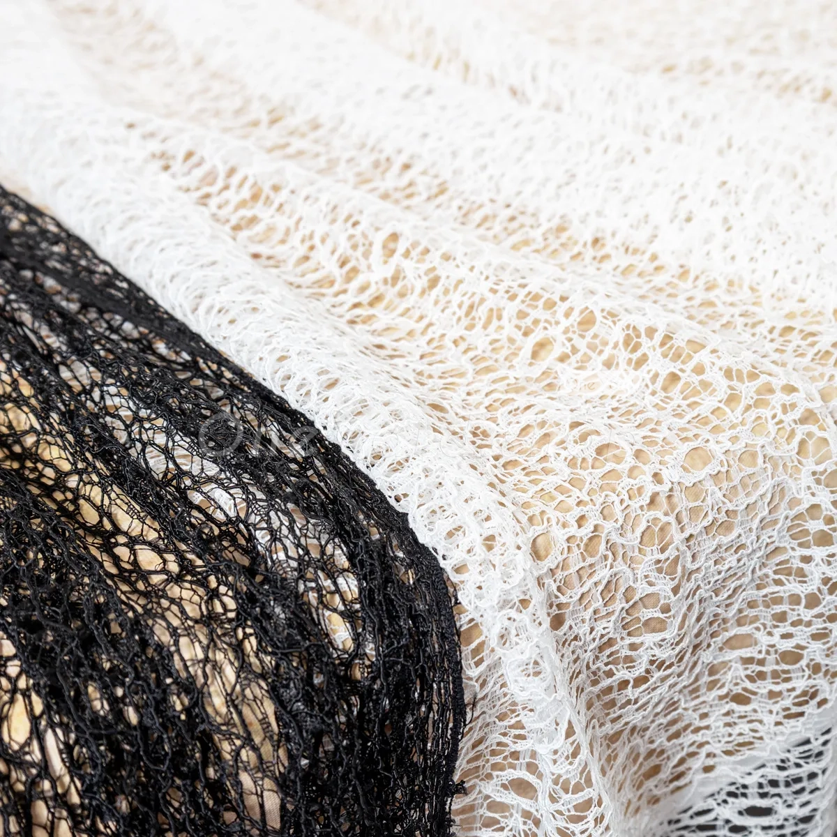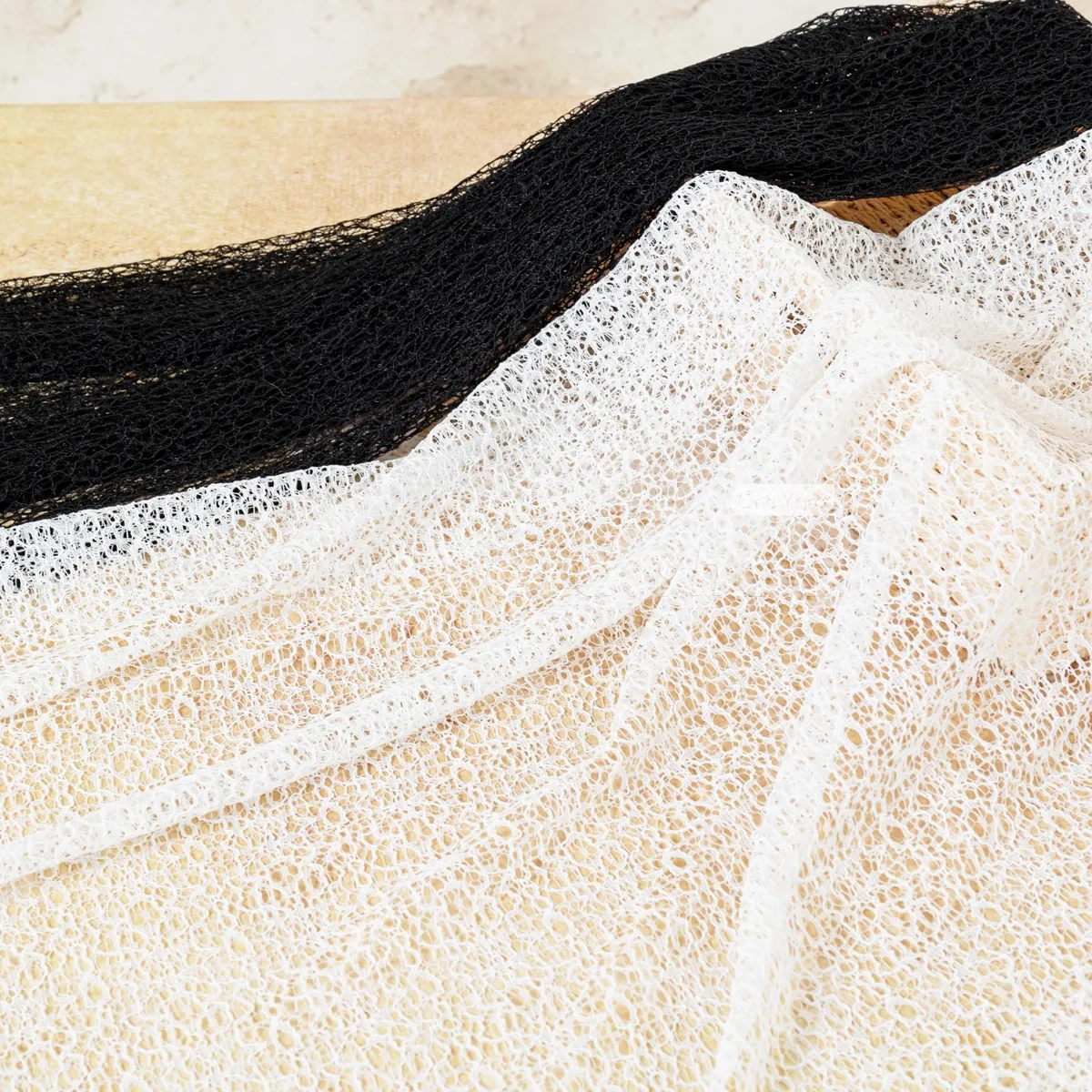 Add a touch of elegance and flexibility to your projects with the beautiful black/ivory stretch messy lace fabric. Available in classic black and ivory white, this intricate, messy pattern lace offers comfortable stretch, making it perfect for apparel accents, lingerie, and craft applications where movement and fit are key.