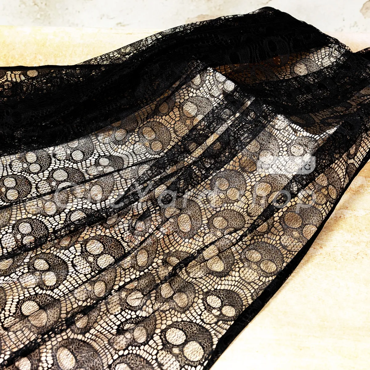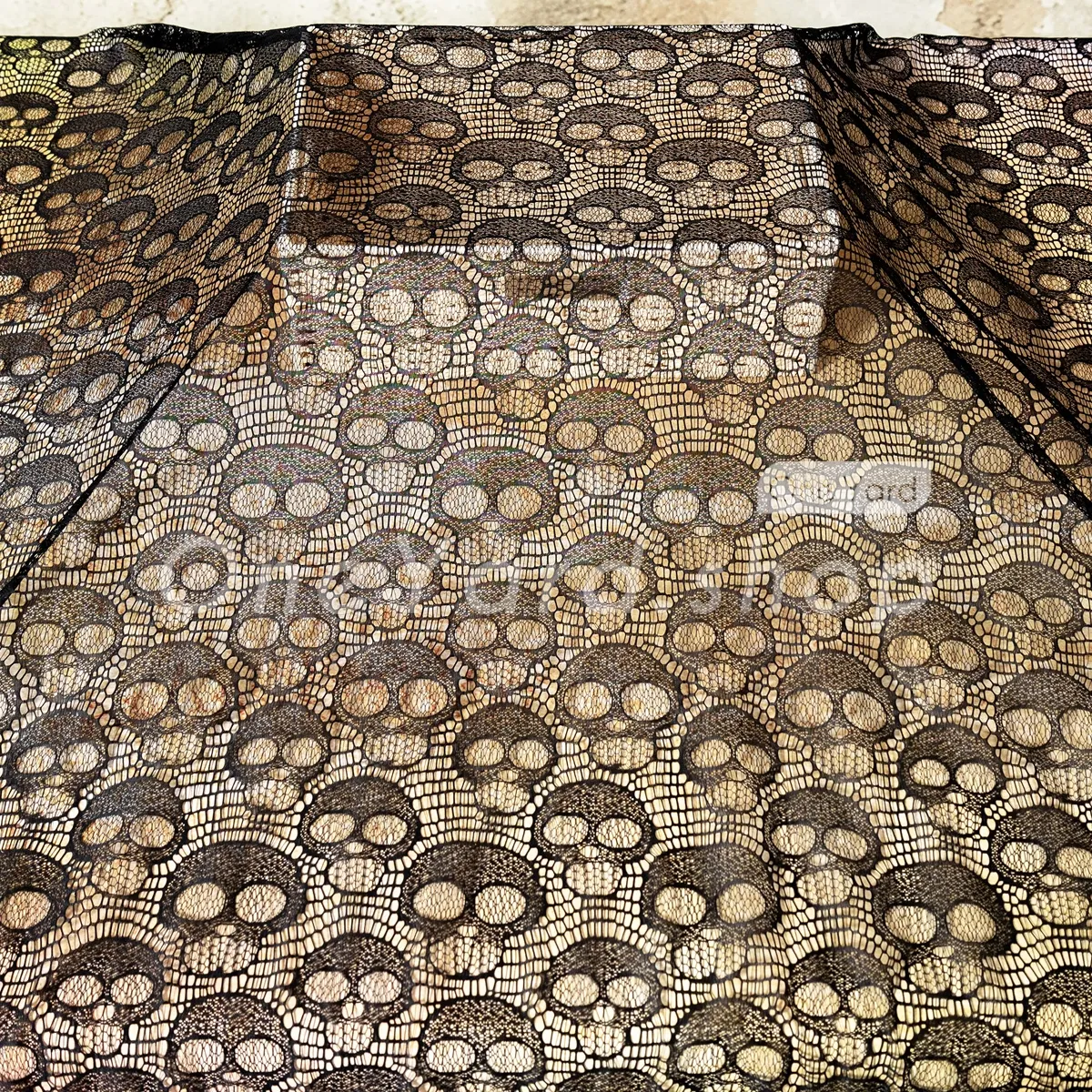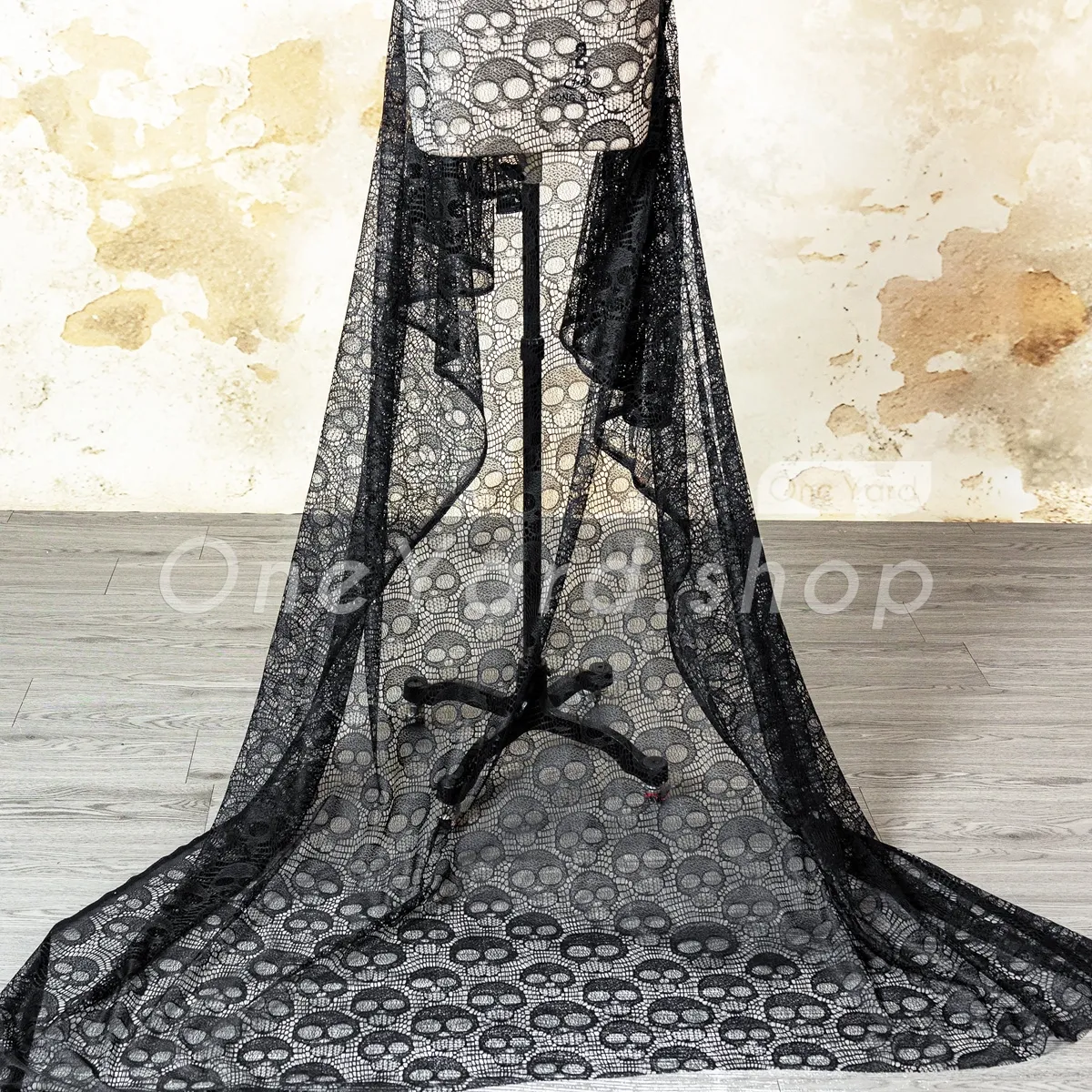 This black skull pattern polyester plain lace fabric is the ultimate choice for Halloween costumes and atmospheric holiday decor. Blending gothic mystery with a sophisticated openwork design, this material features an all-over stylized skull motif that is both provocative and detailed. Perfect for adding a gothic touch to your home as a mantel runner, an eerie window treatment, or a specialized tablecloth for a haunted dinner party.
