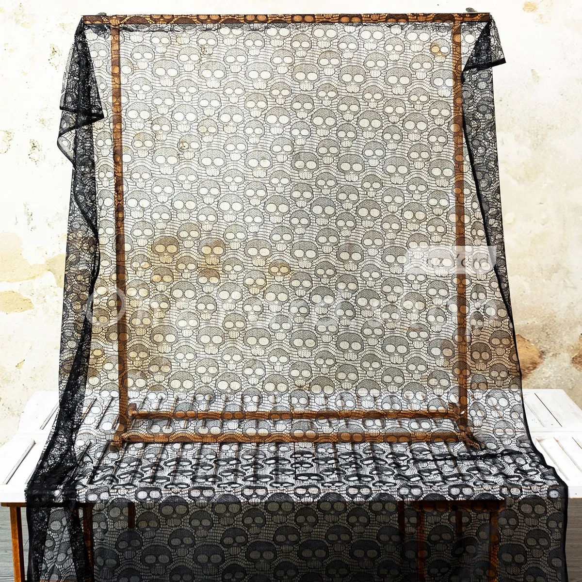 Black Skull Pattern Plain Lace Fabric for Halloween