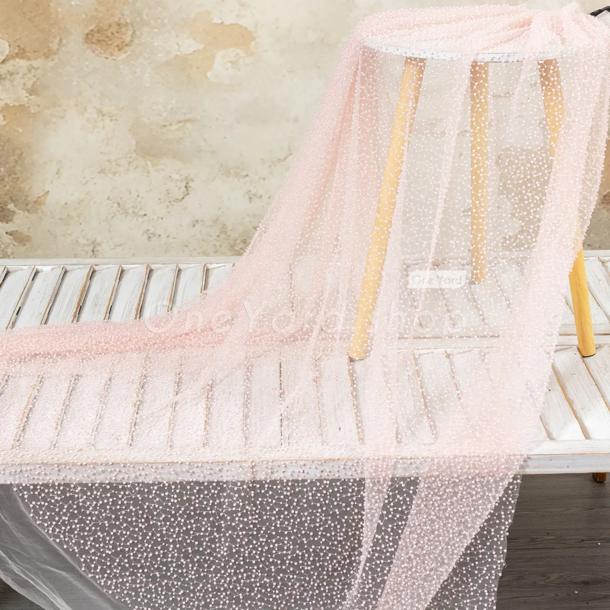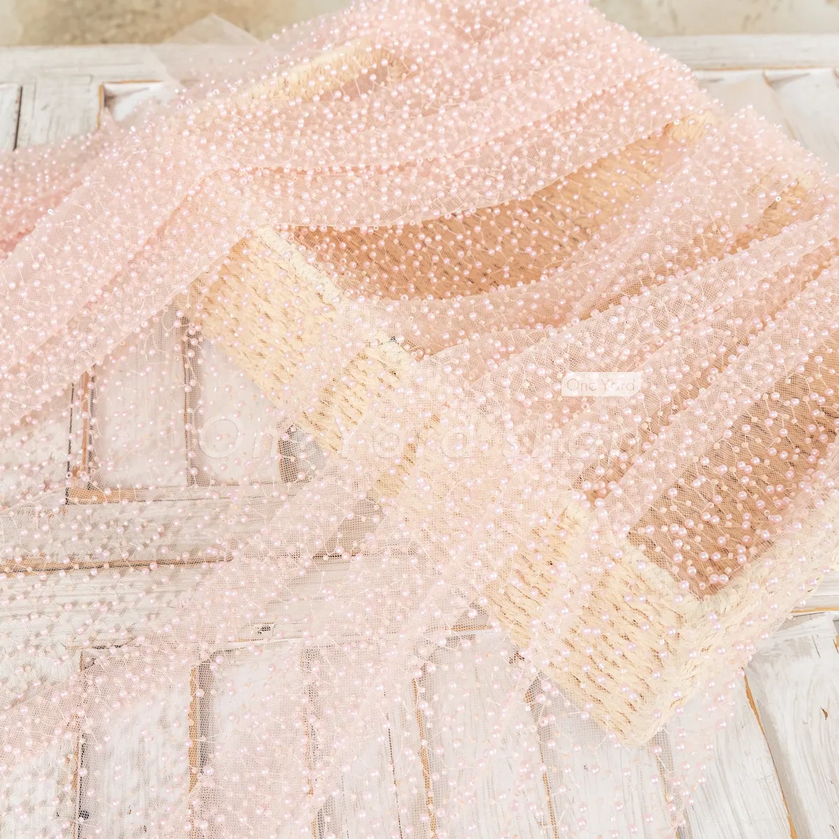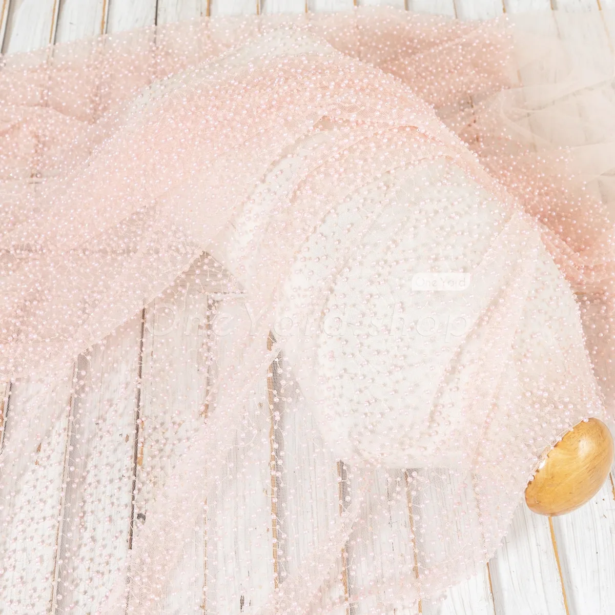 Ultra-fine Blush Pink Pearls & Beads Soft Tulle Fabric