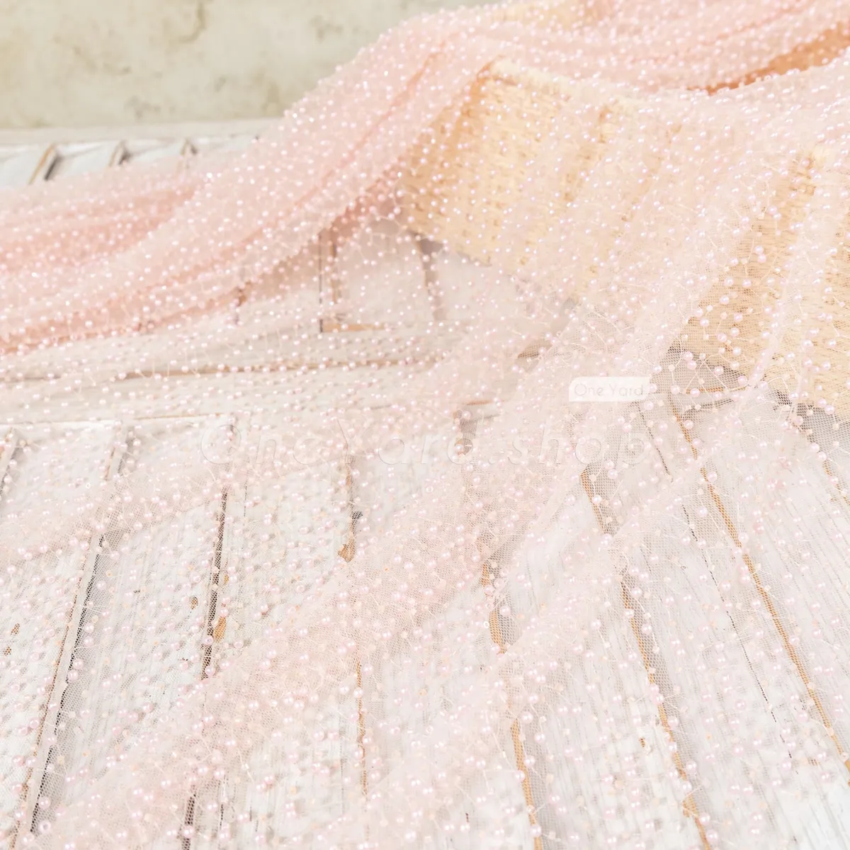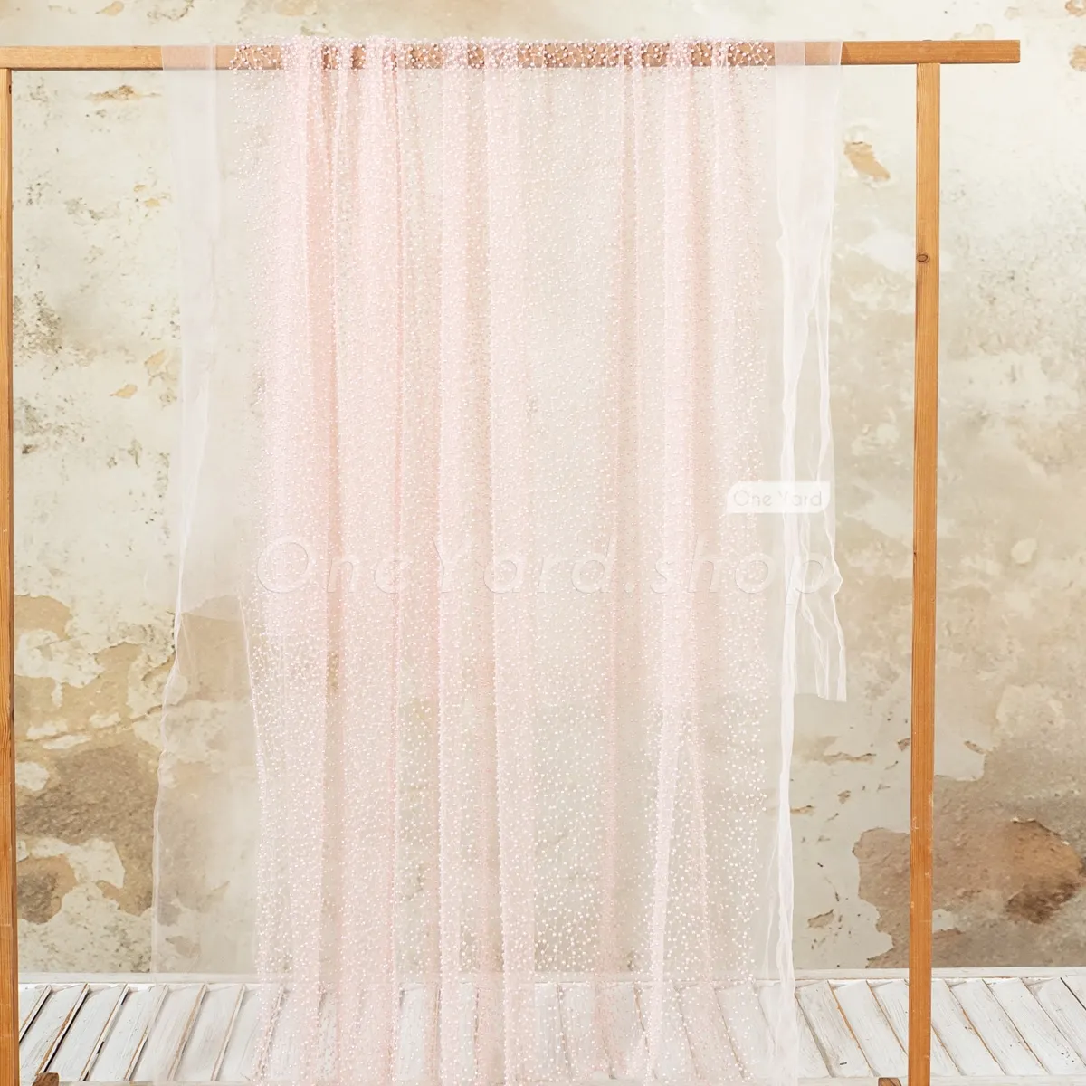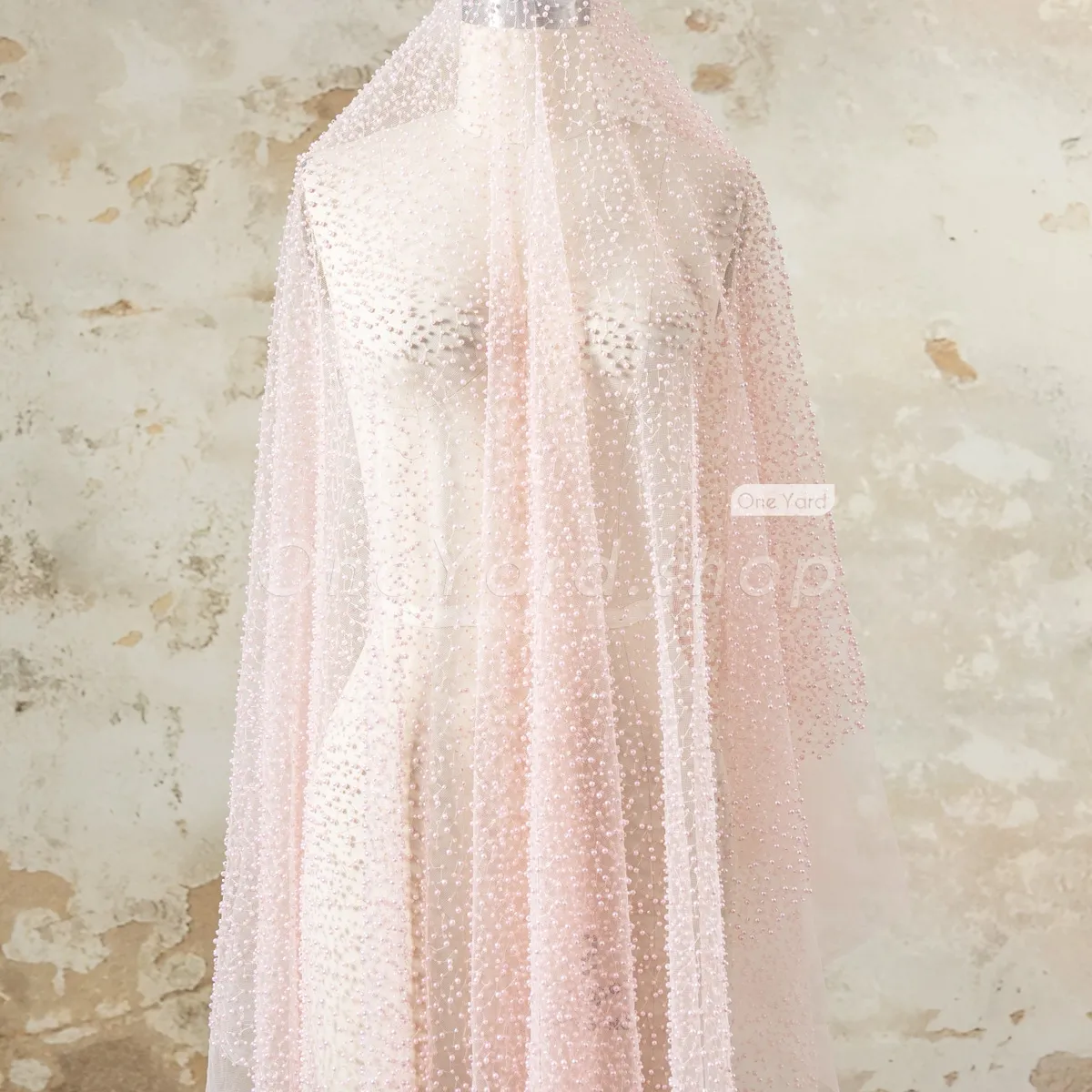Ultra-fine Blush Pink Pearls & Beads Soft Tulle Fabric