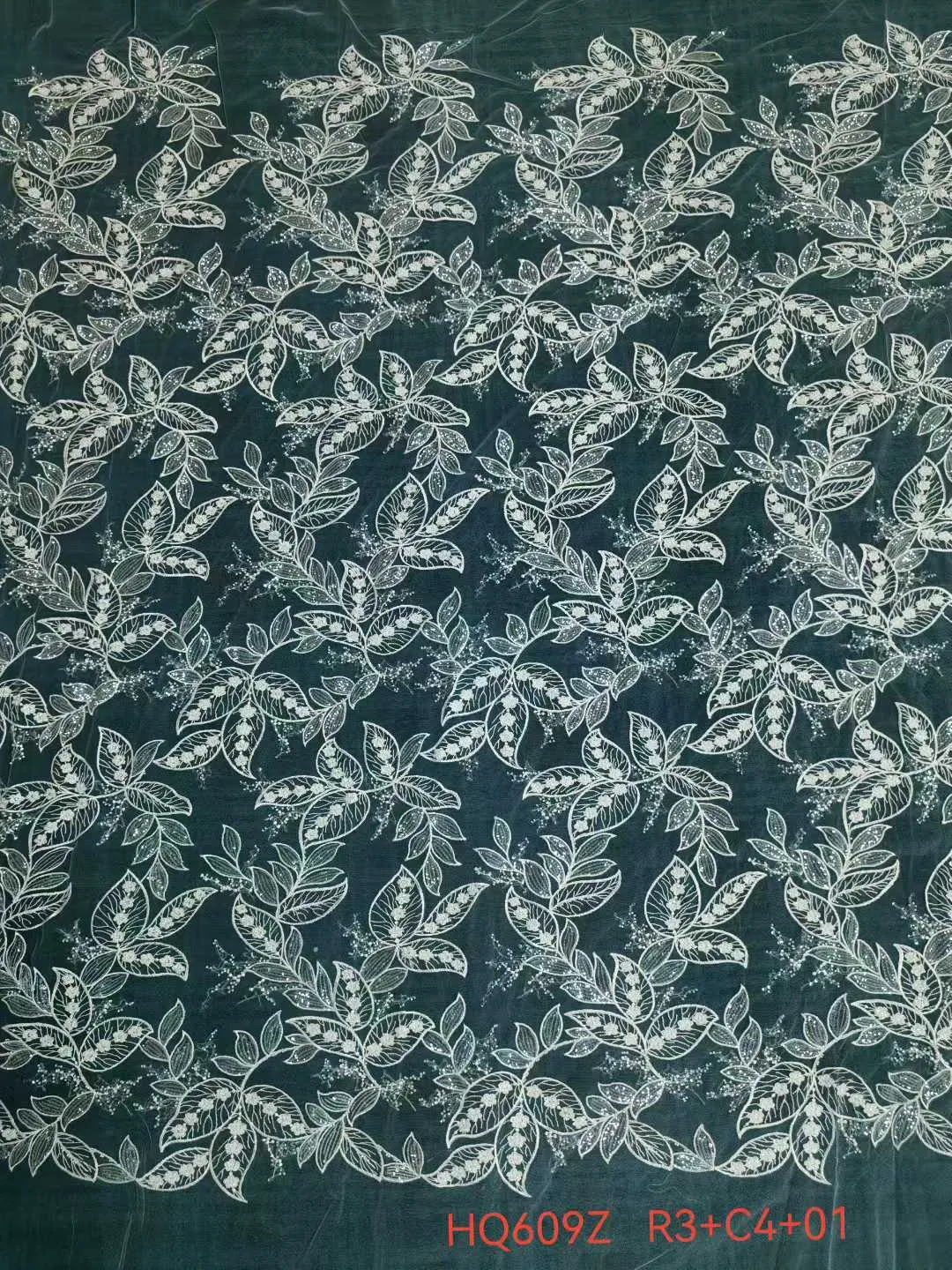 Sequinned Corded Botanical Leaf Embroidered Mesh Lace