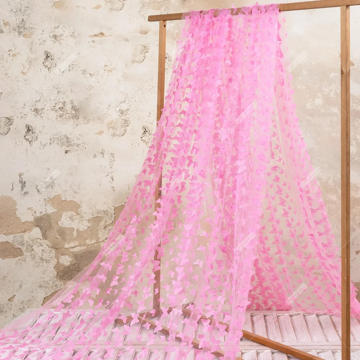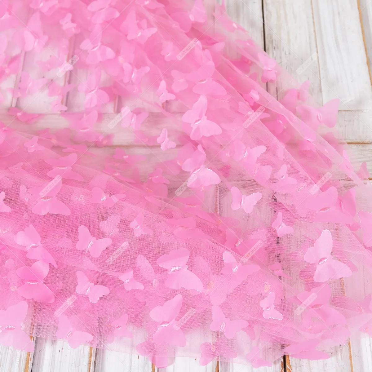 Delicate Candy Pink 3D Butterfly Embroidery Soft Mesh