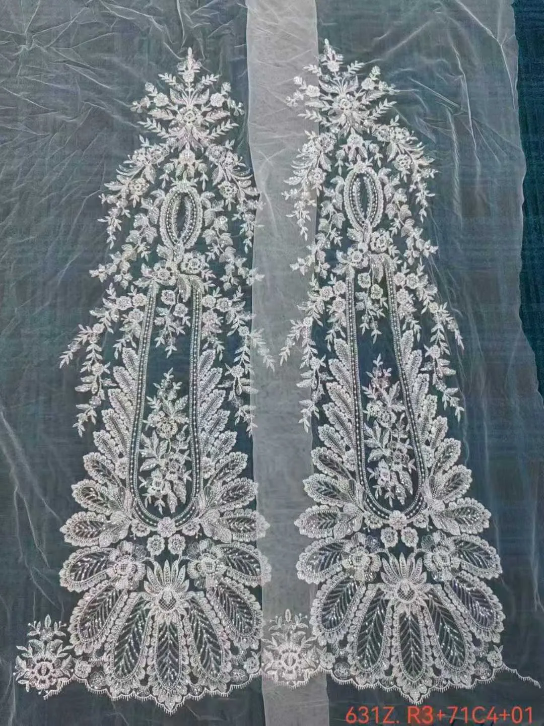 Regal Sequinned Corded Elongated Medallion Mesh Lace