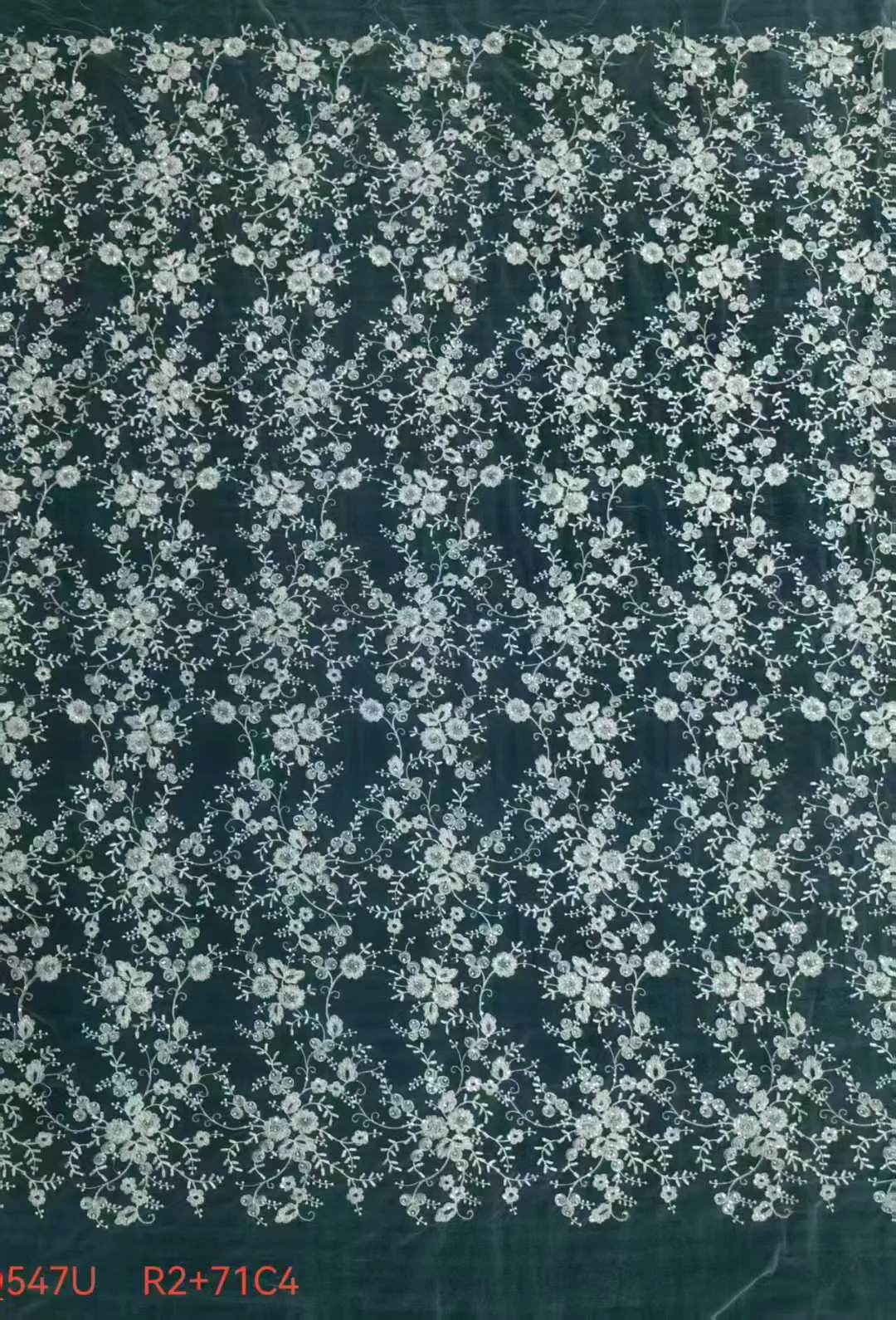 Dainty Horizontal Floral Vine Embroidered Lace Fabric