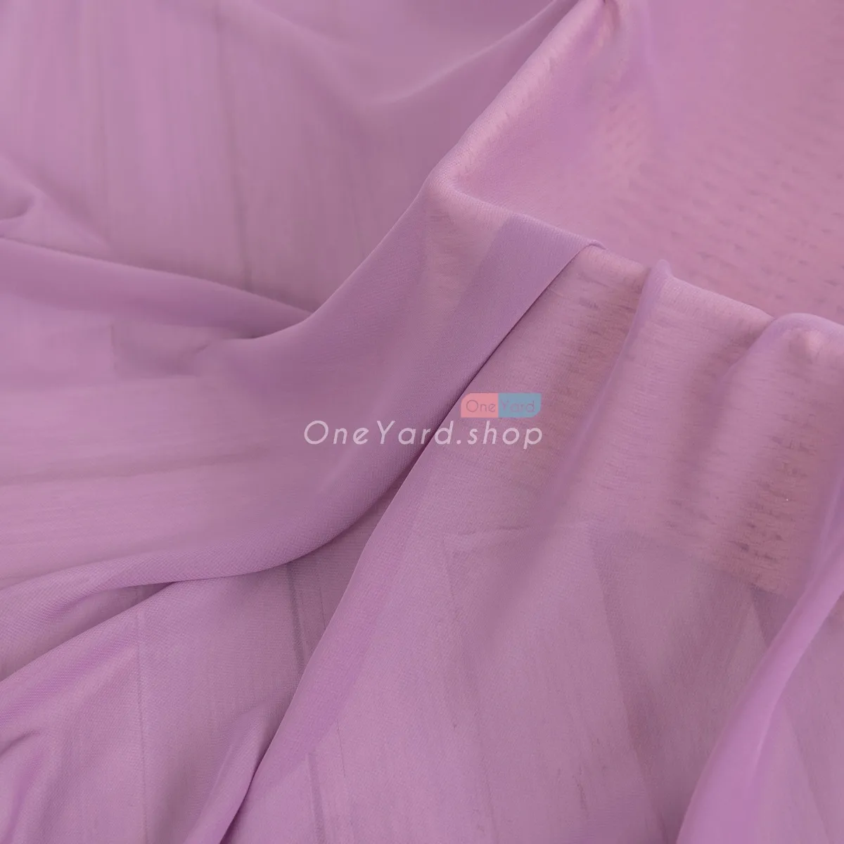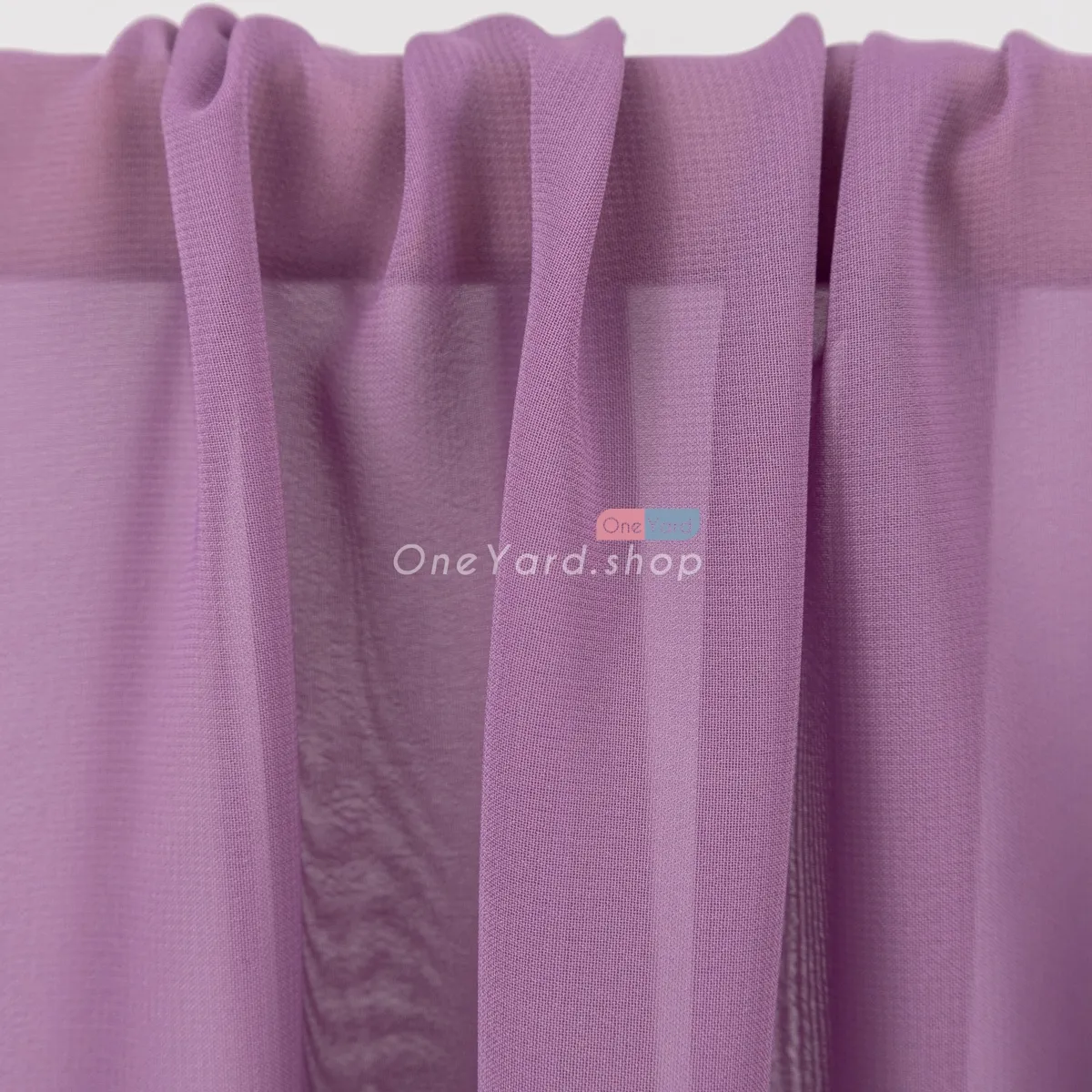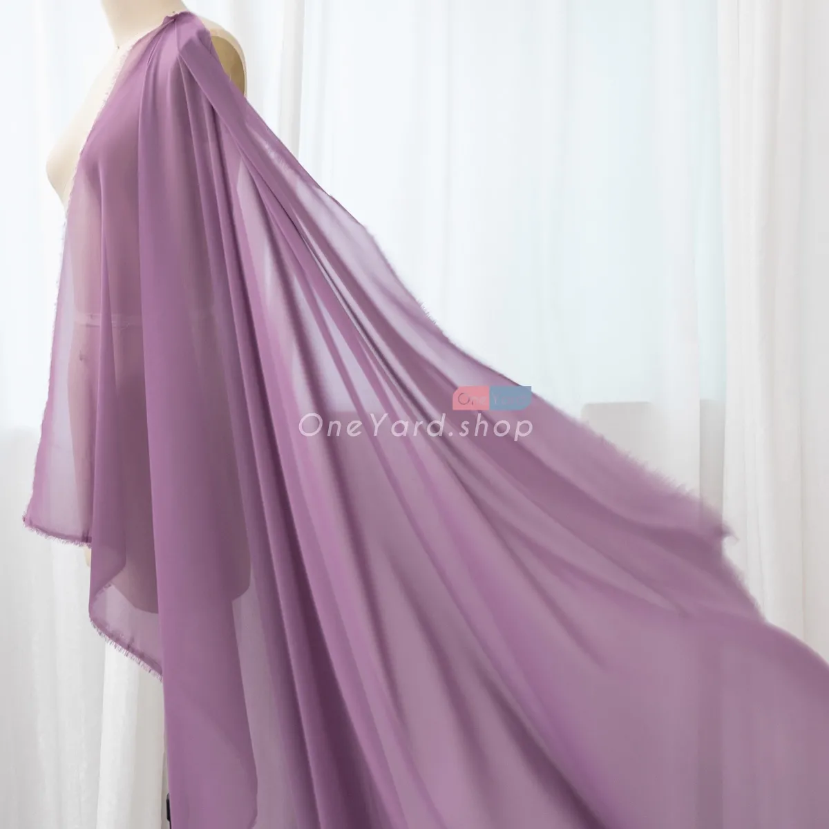 Dusty purple solid semi-translucent polyester 100D chiffon fabric by the yard. The dusty purple chiffon material is soft, draped well, breathable, and flowy.