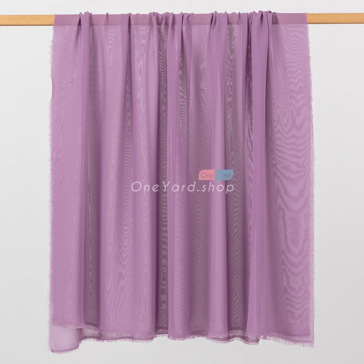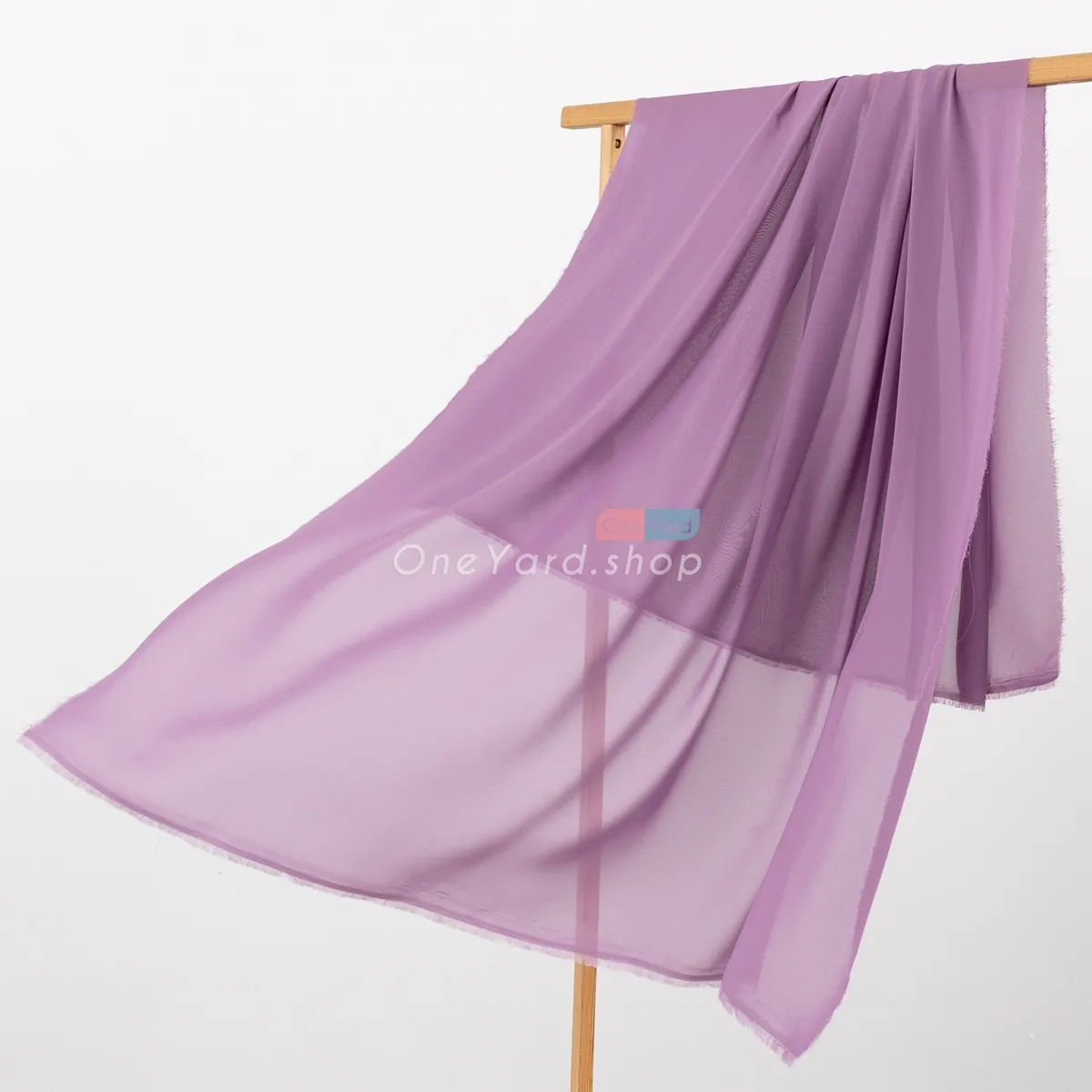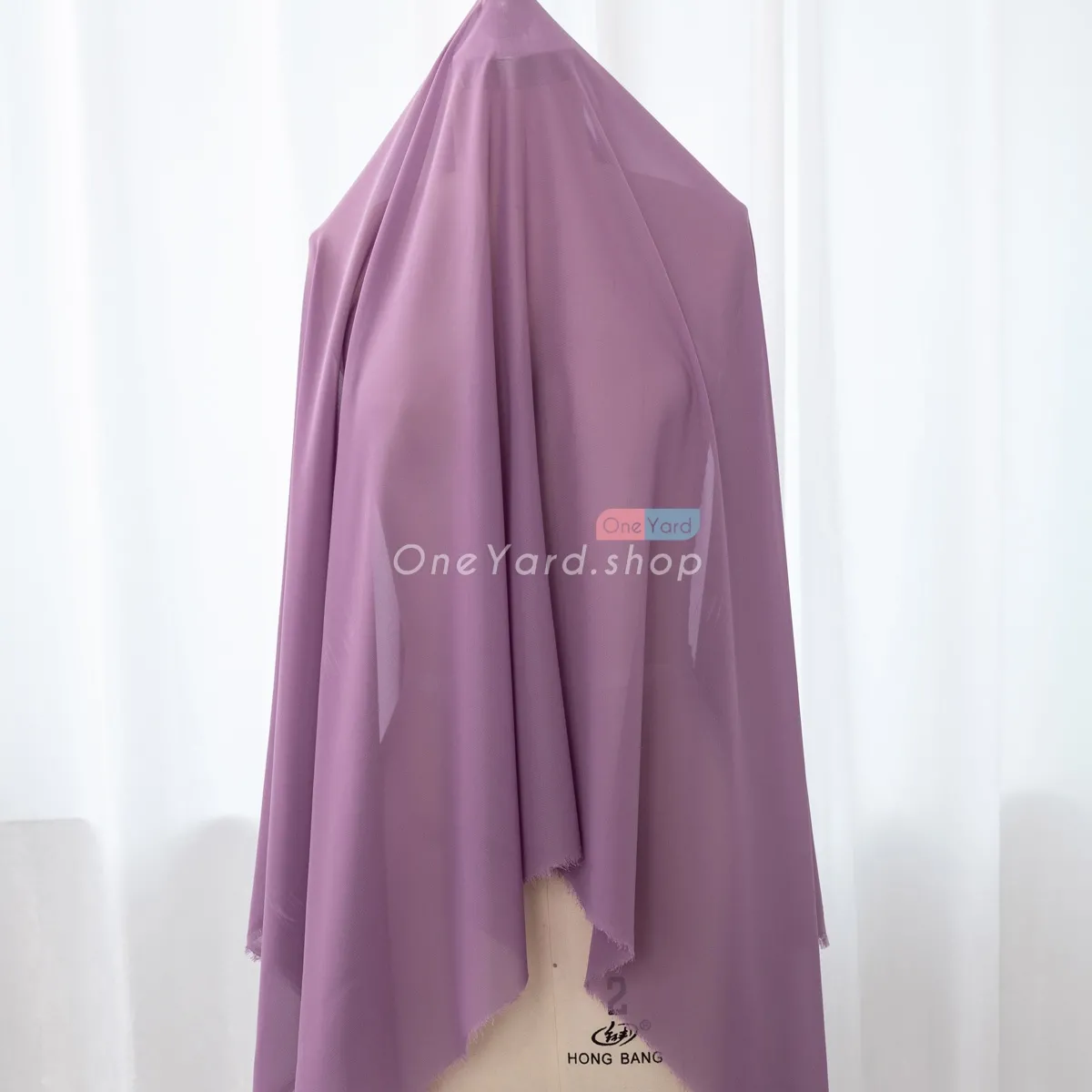 Dusty purple solid semi-translucent polyester 100D chiffon fabric by the yard. The dusty purple chiffon material is soft, draped well, breathable, and flowy.