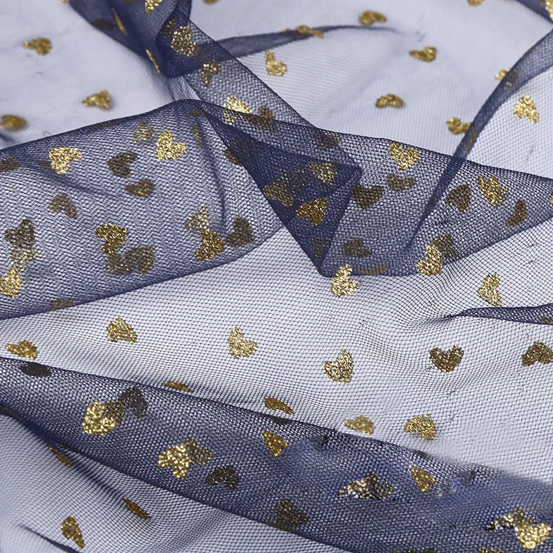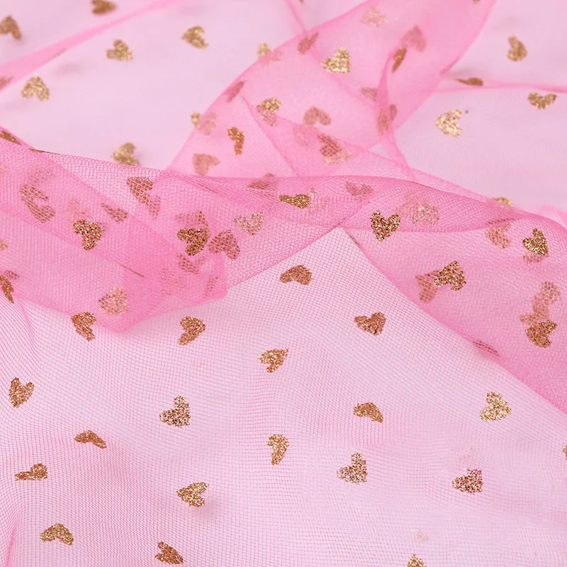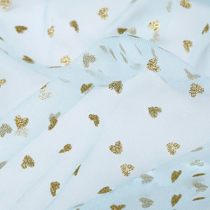 Glitter Gold Heart Sheer Tulle Fabric for Party Dress