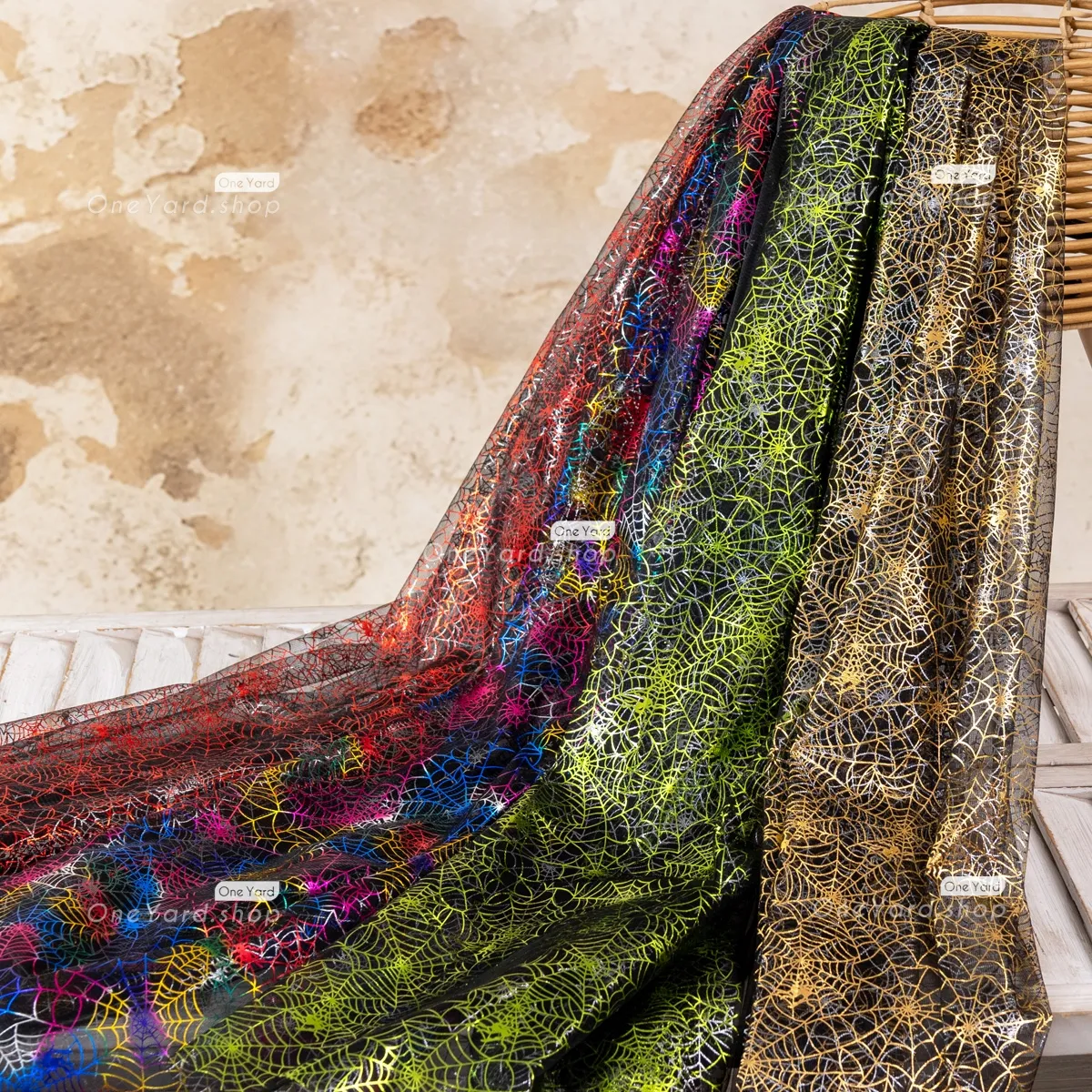 Halloween Spider-web Foil Print Decorative Mesh Fabric