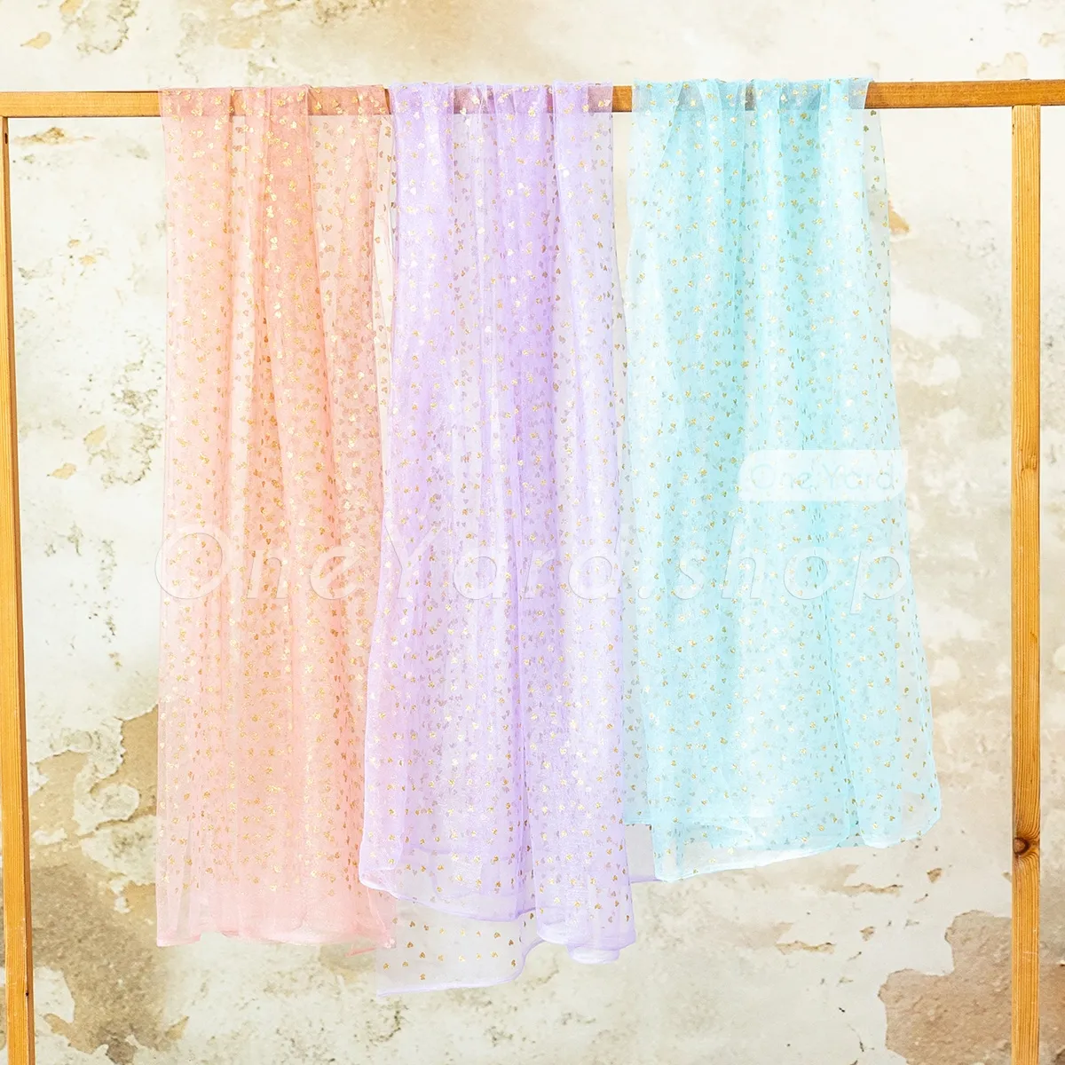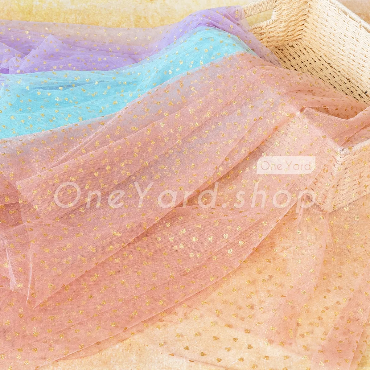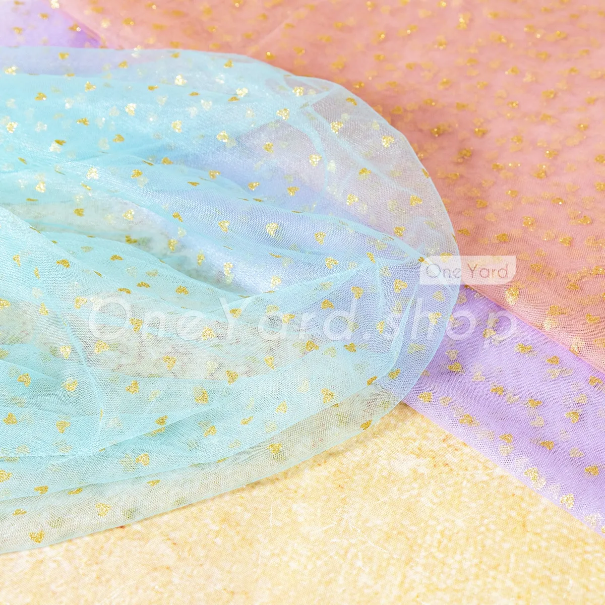 Charming Heart-print Gold Glitter Tulle Décor Fabric