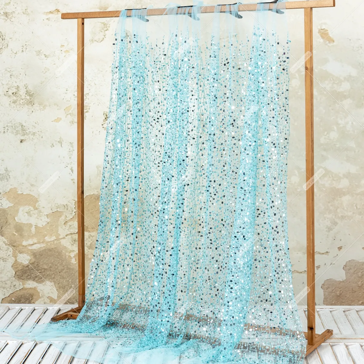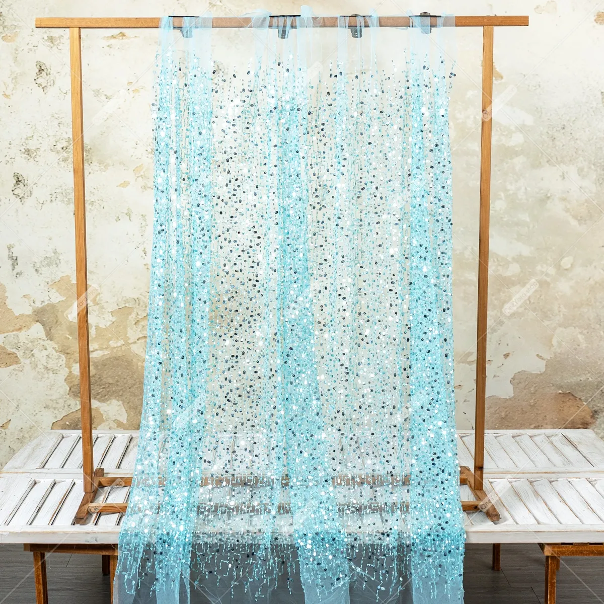 Dazzling Sequinned Ice Blue Rainfall Beading Material