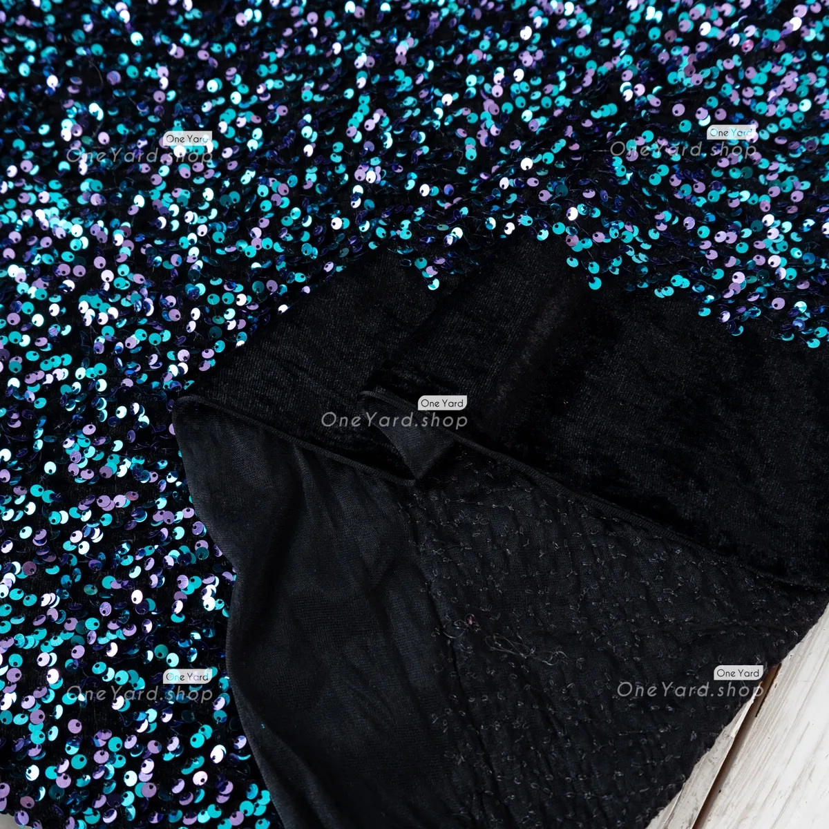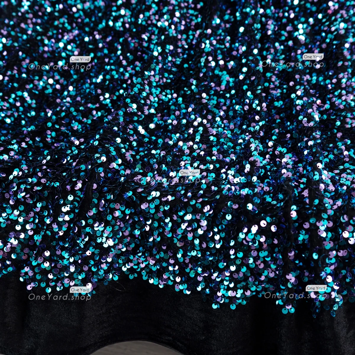 Iridescent Indigo Sparkling Sequin Black Velvet Fabric