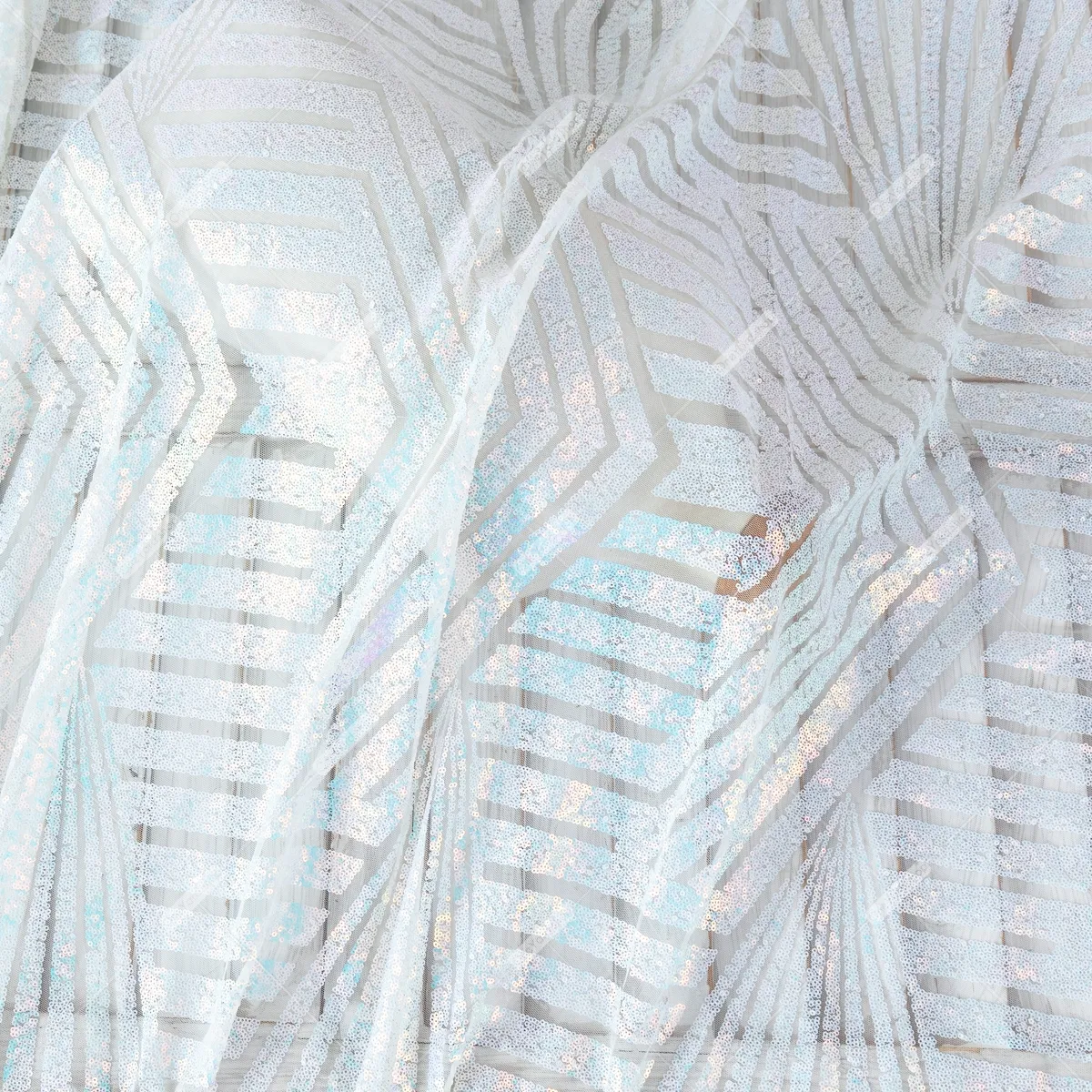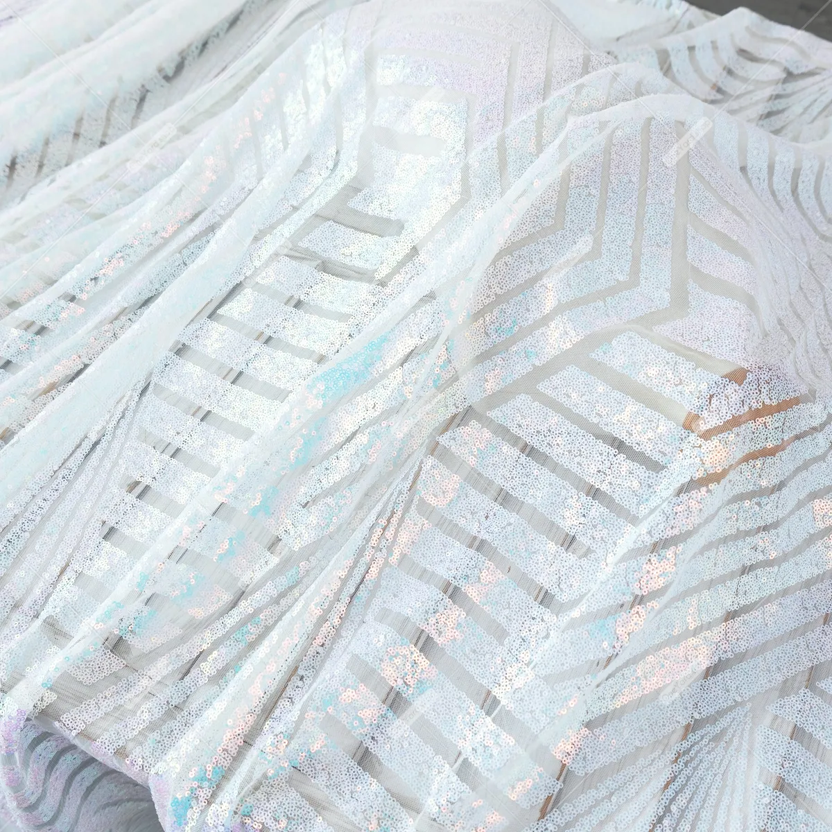 Fancy Iridescent White Bombshell Stripe Sequin Fabric