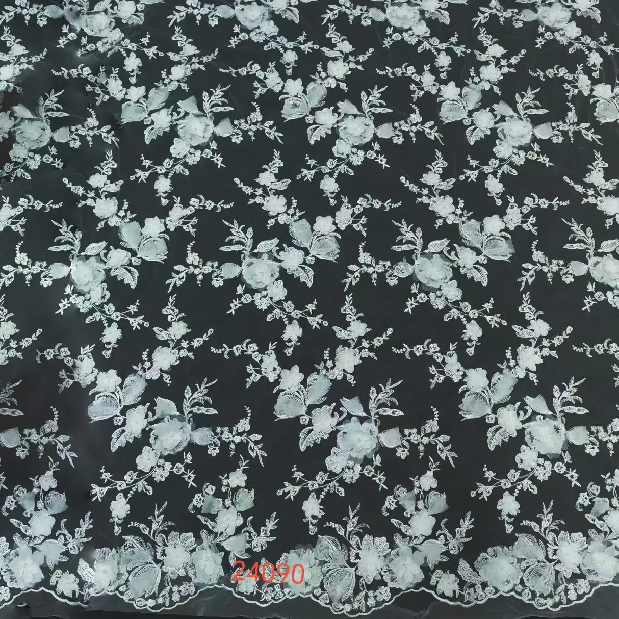 Luxury 3D Rose Flower Lace Fabric for Wedding Dress