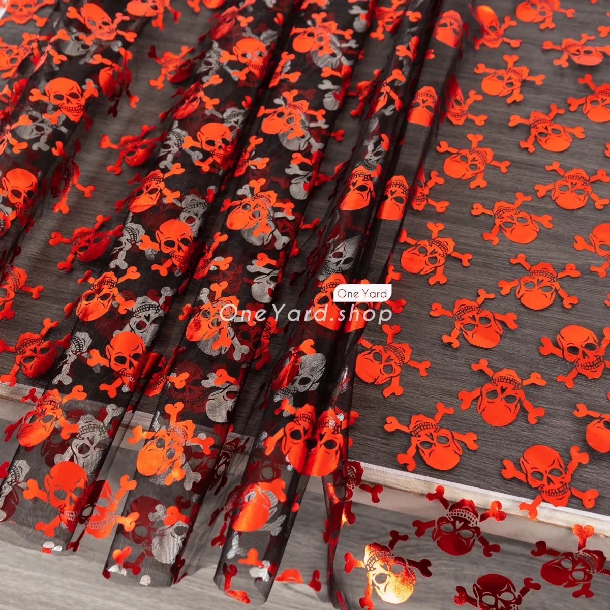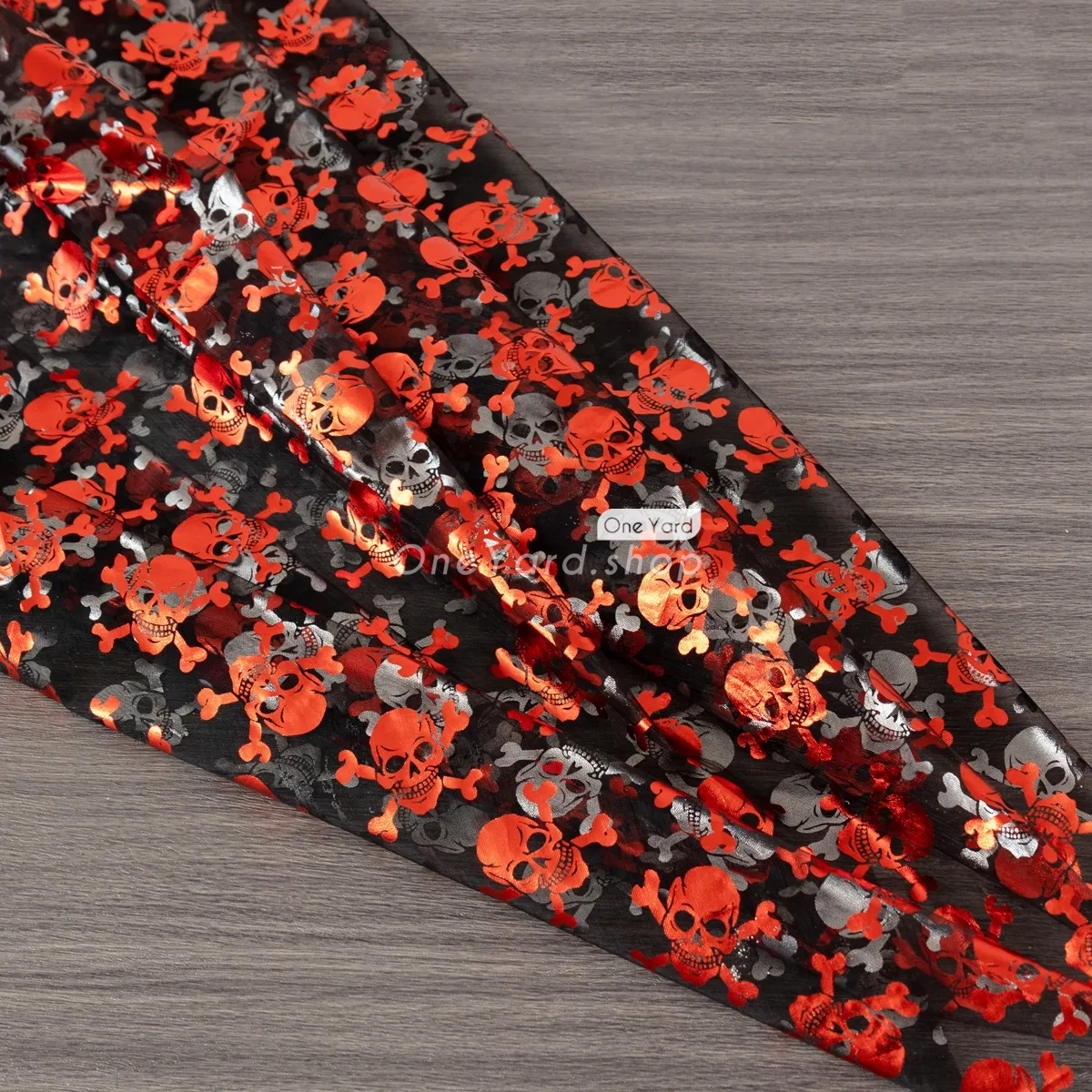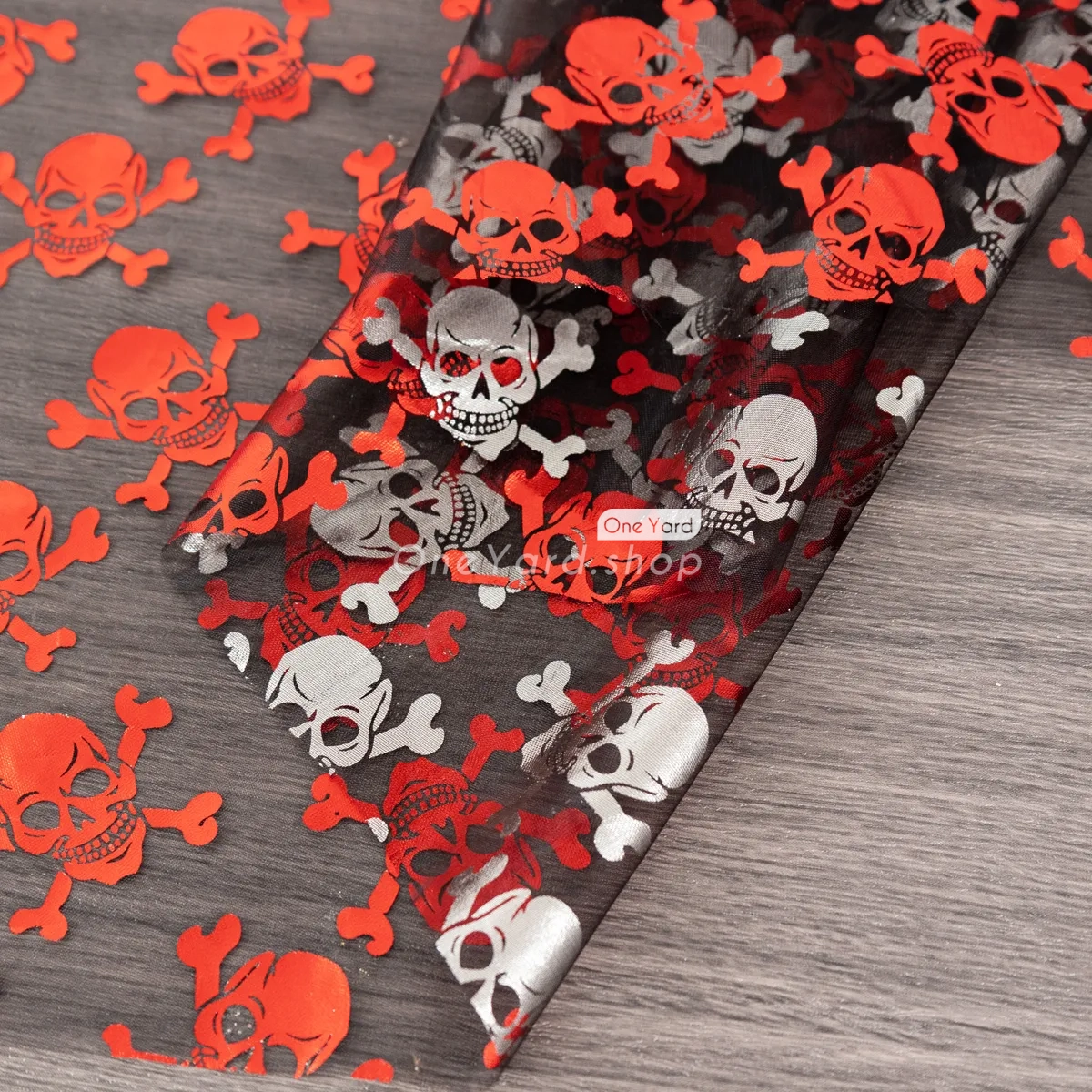 Metallic Red Skull Black Sheer Mesh Halloween Fabric