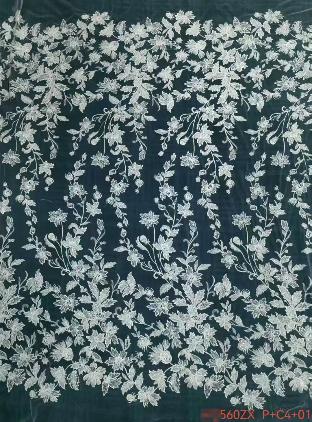 Modern Large Scattered Floral Embroidered Lace Fabric
