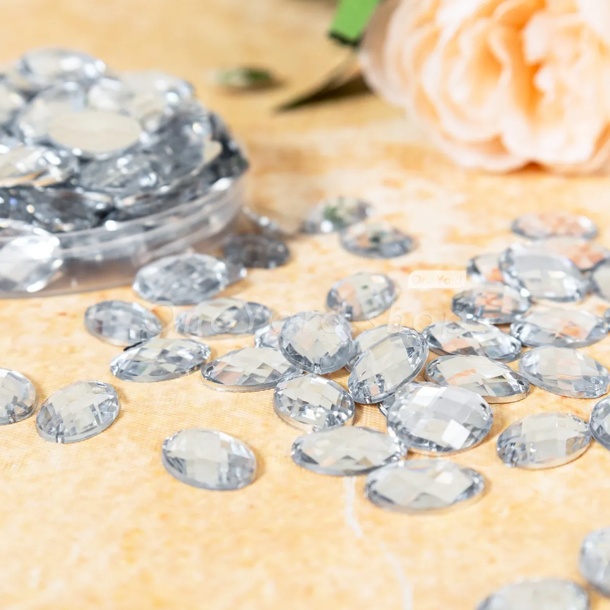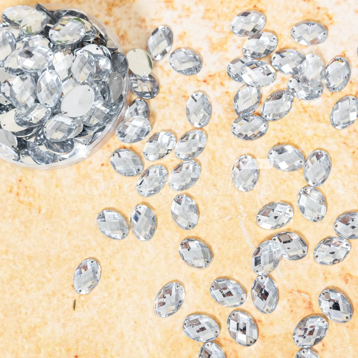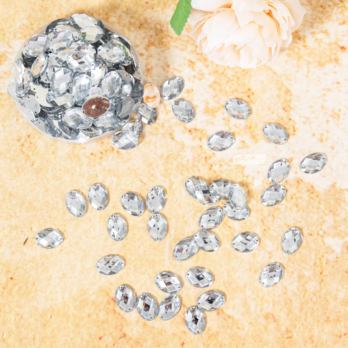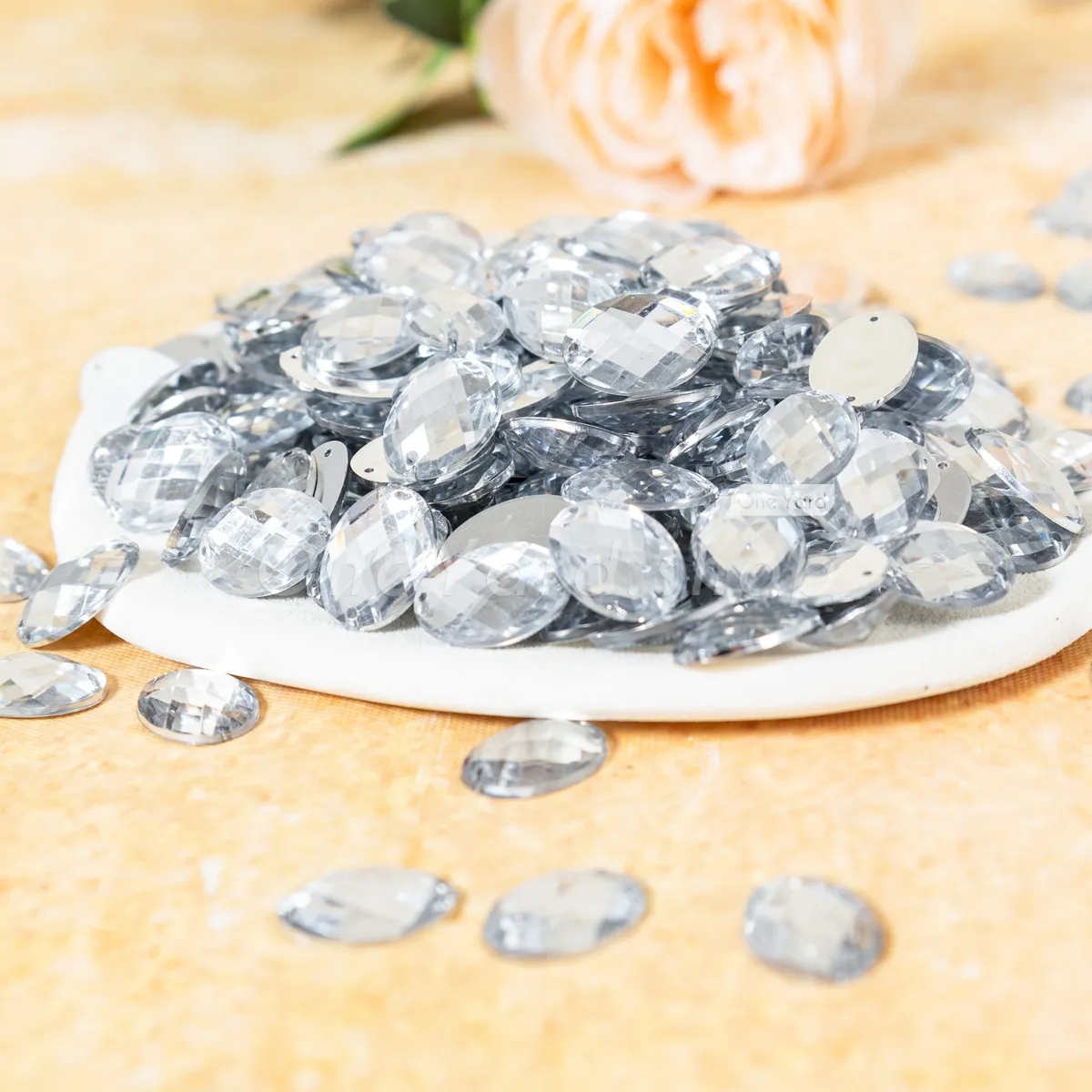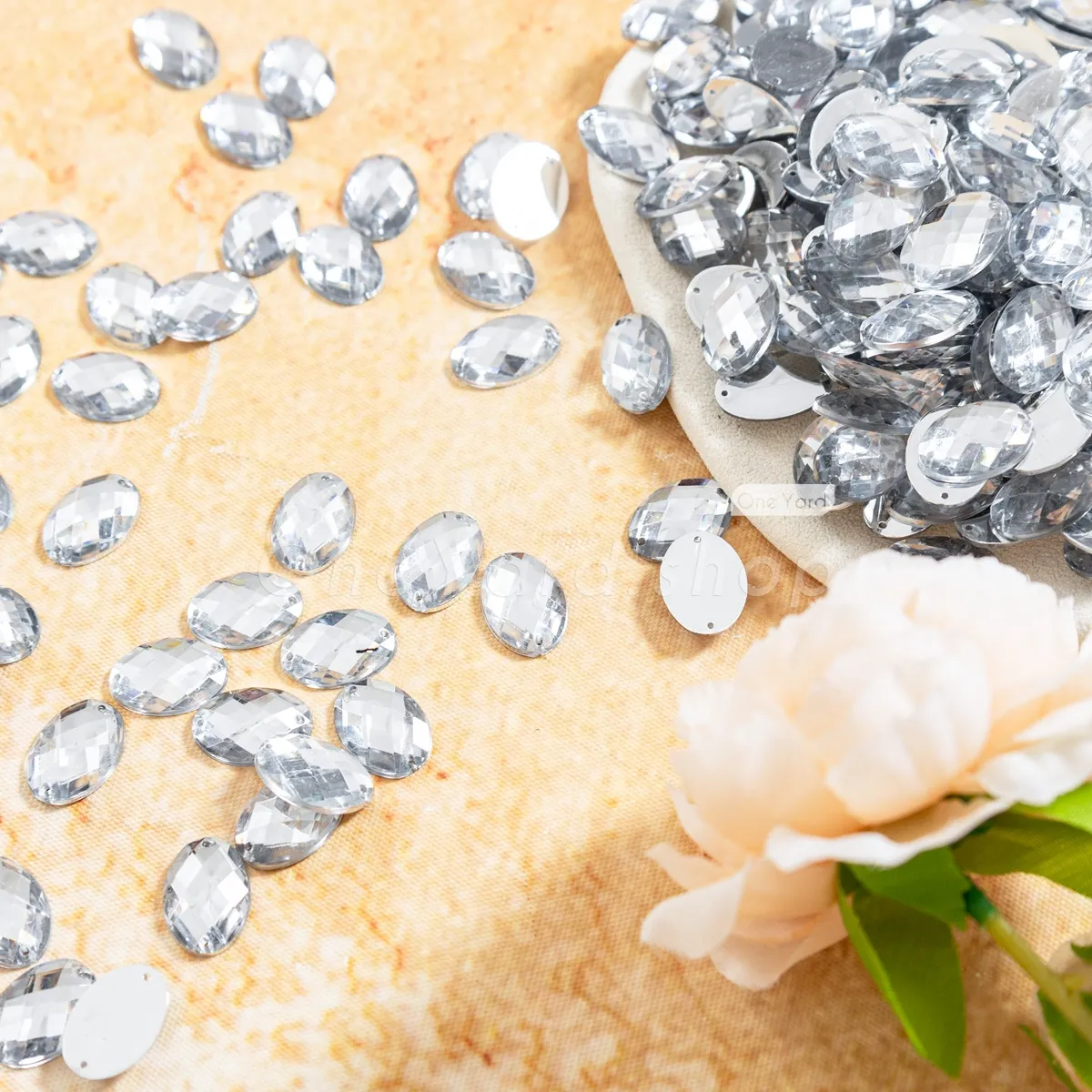 Bring dazzling shine to your creations with these lightweight, oval-shaped(ellipse) acrylic gems. Featuring a classic faceted surface and silver backing, they offer the high-impact sparkle of crystal without the heavy weight, making them an excellent choice for projects requiring extensive embellishment. Each stone features two pre-drilled holes (one on each end), ensuring they can be securely sewn onto high-movement garments like dance costumes.