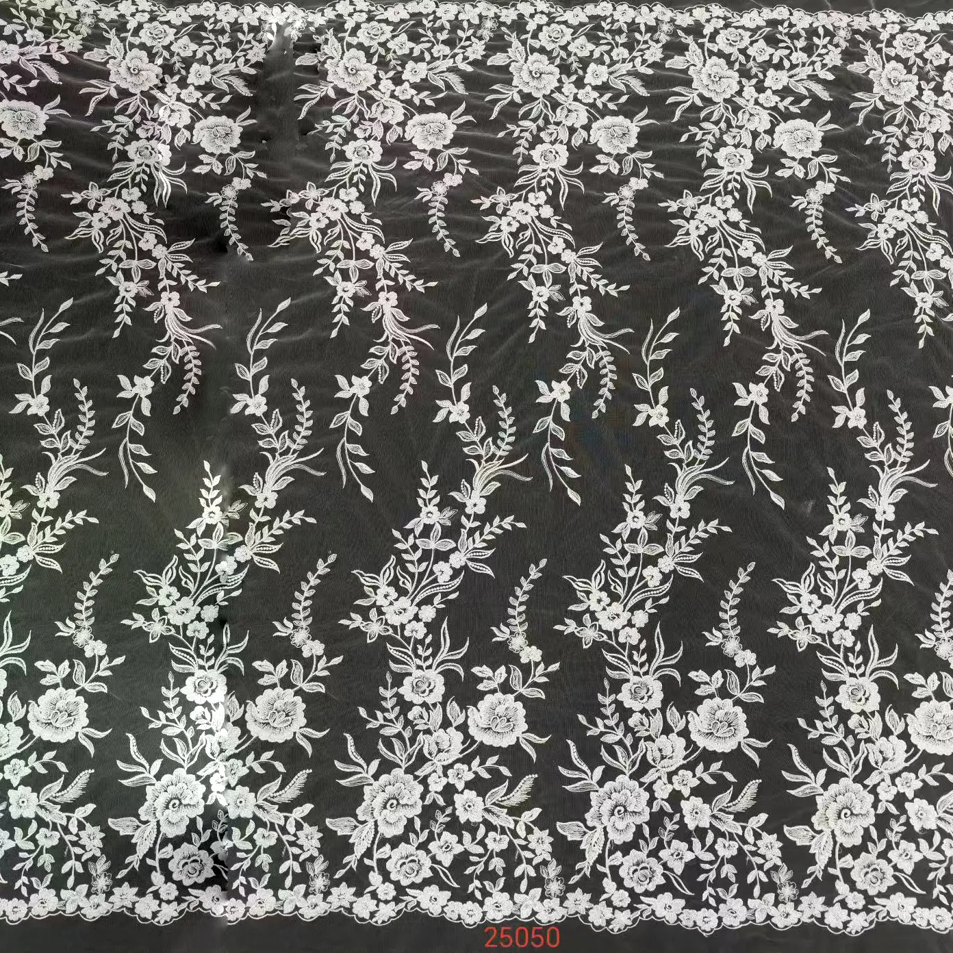 Romantic Floral Embroidery Lace Fabric for Formal Gown