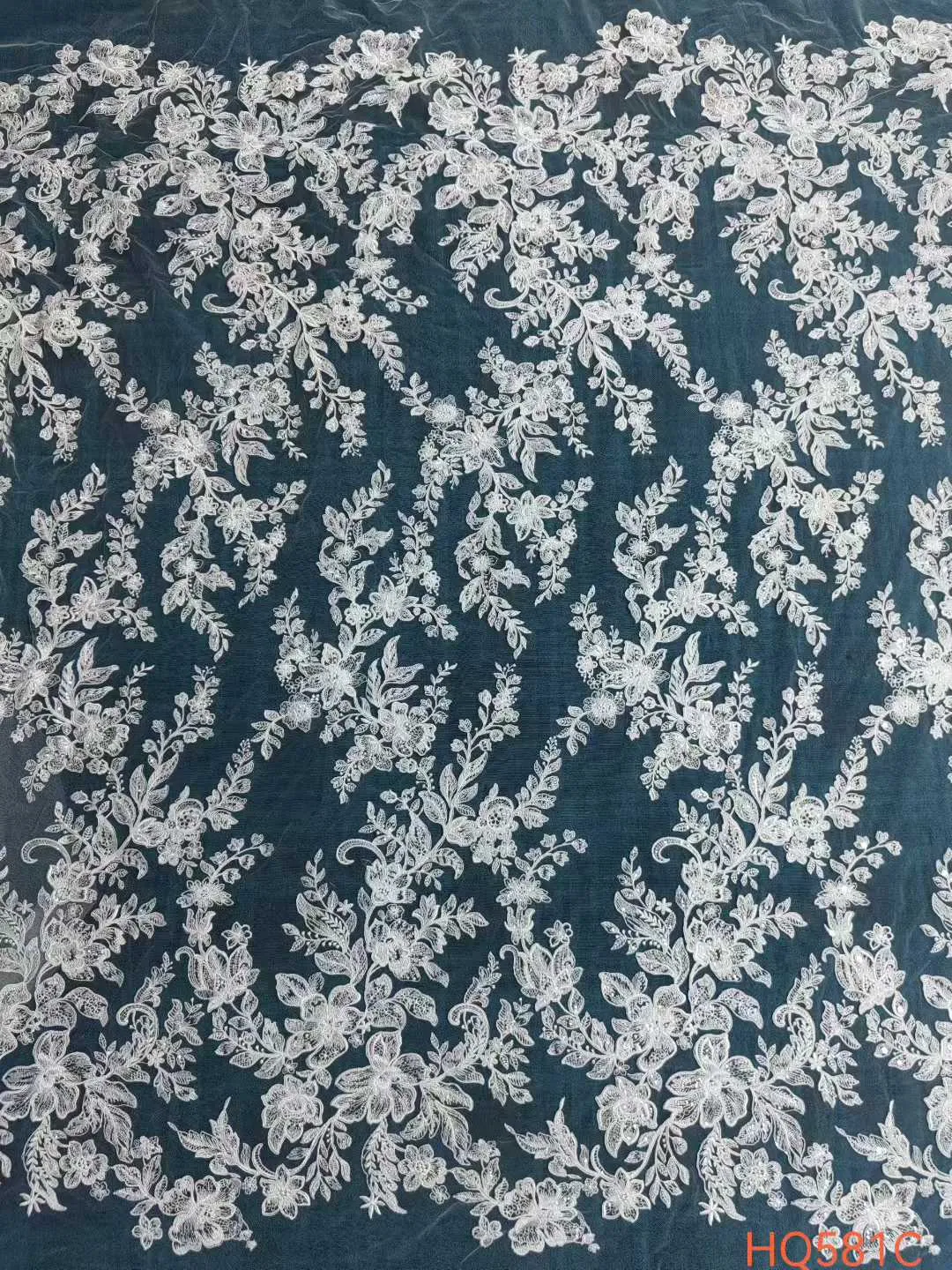 Add a touch of timeless elegance to your couture designs with this beautiful embroidered mesh lace fabric. Featuring an all-over pattern of graceful trailing floral vines and blooming clusters, this nature-inspired textile offers a stunning rhythmic flow. The dense botanical motifs provide excellent coverage while maintaining an ethereal, lightweight drape. This seamless design is perfect for crafting enchanting bridal gowns, romantic evening dresses, and luxurious fashion overlays.