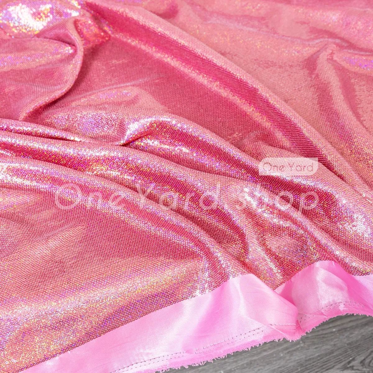 Brilliant Rose Pink Iridescent Sequin Satin Fabric
