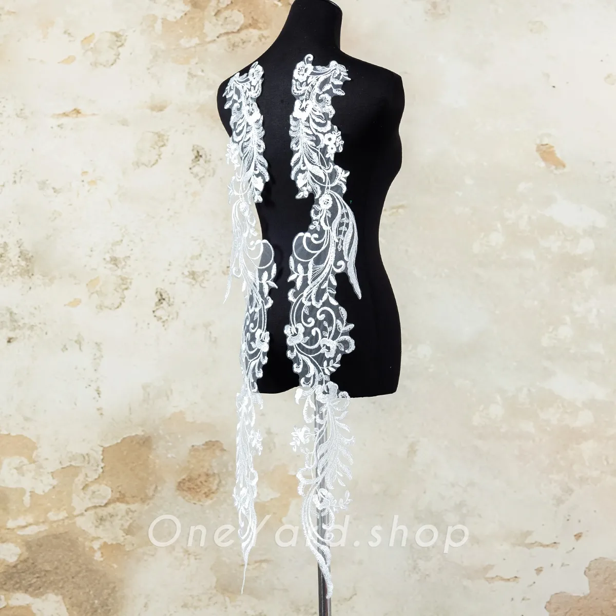 Sequinned Long Floral Vine Mirrored Lace Appliqué Pair
