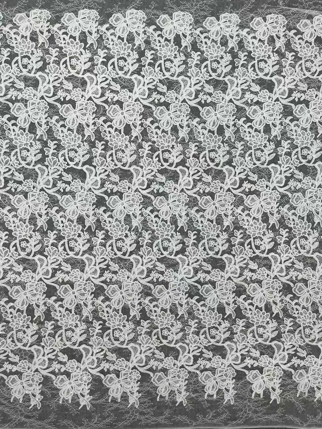 Sweet Bowknot & Floral Vine Embroidered Lace Fabric