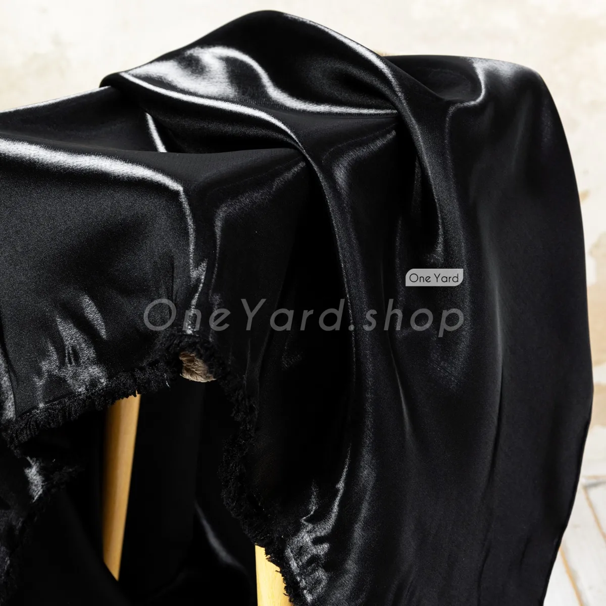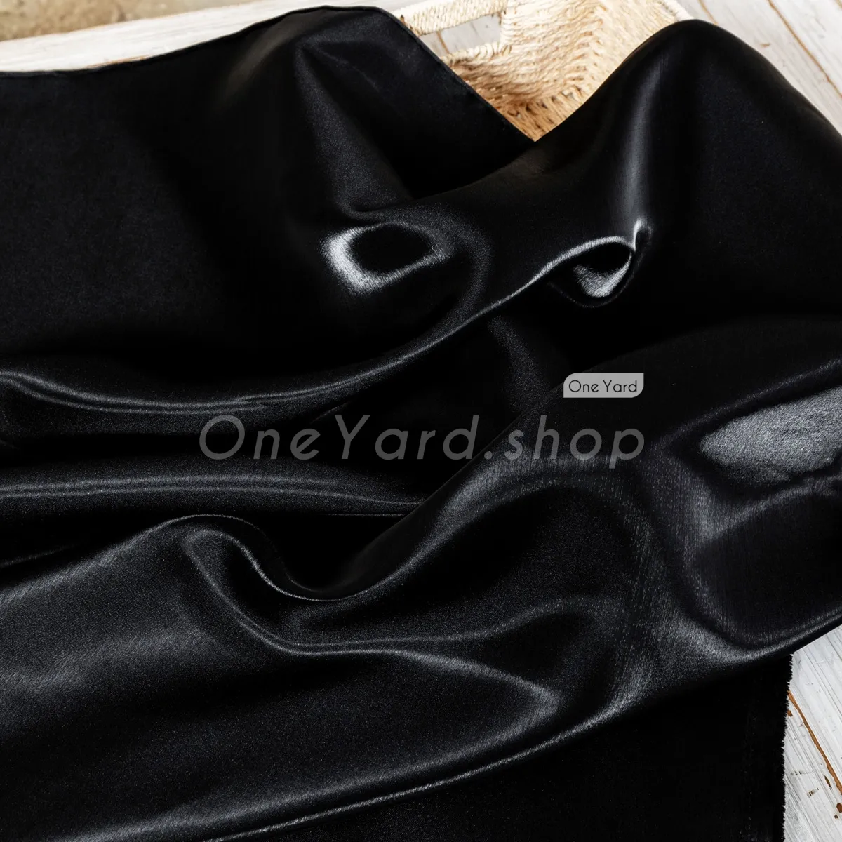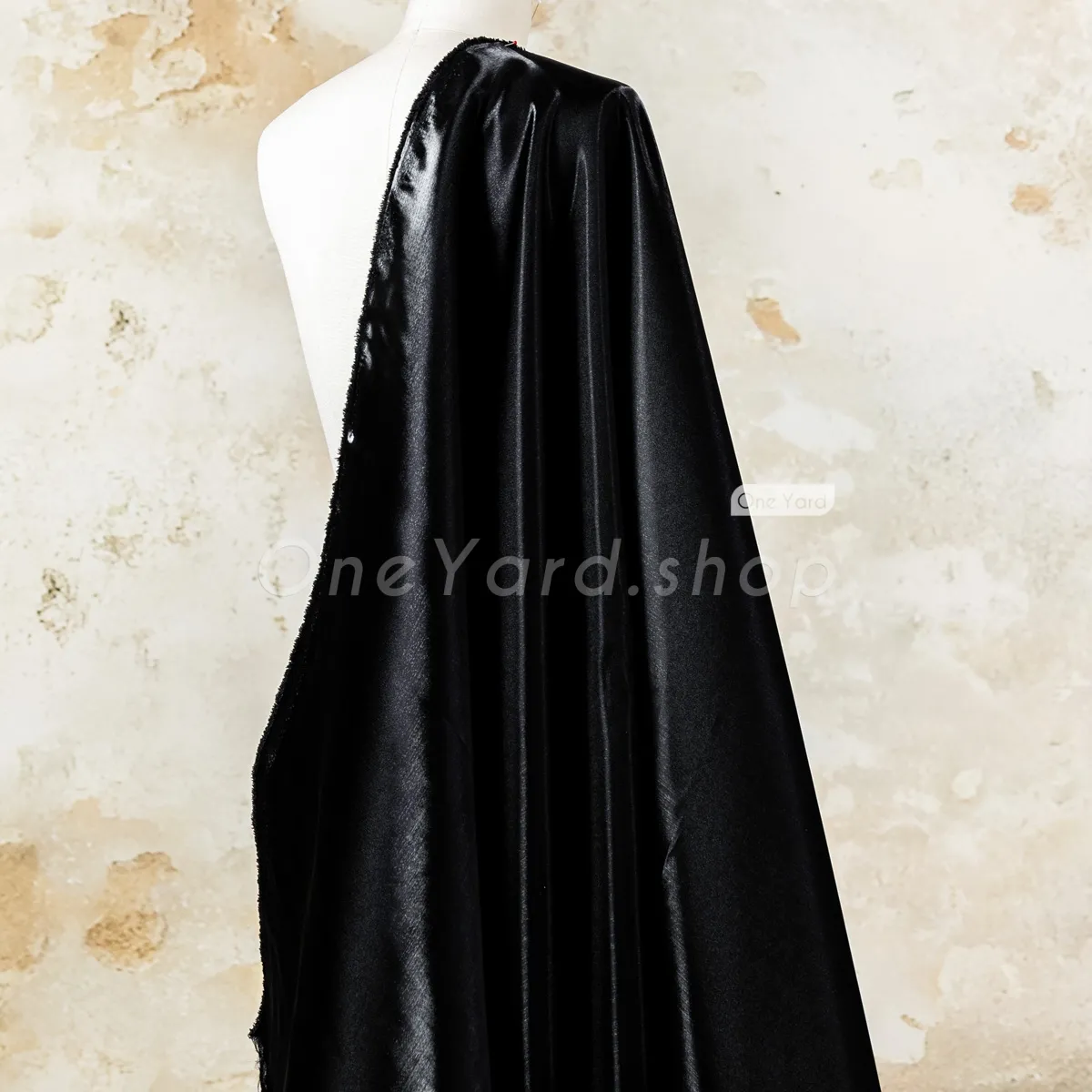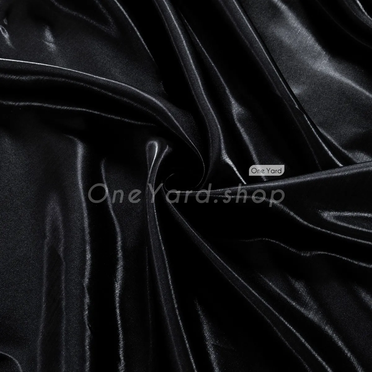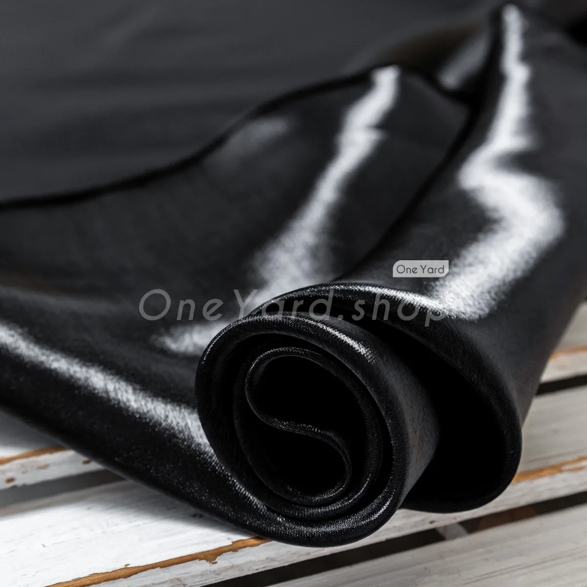 This ultra-glossy black crystal satin is a luxurious, high-performance textile that combines the classic elegance of a liquid-like sheen with modern flexibility. Designed to capture and reflect light beautifully, this satin fabric offers a radiant finish that elevates any garment into a statement piece. Lustrous 'liquid' sheen: the black satin features a sleek, ultra-smooth surface with a high-gloss finish that creates a sophisticated wet-look appearance.