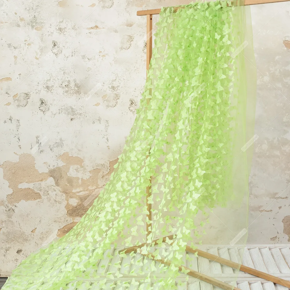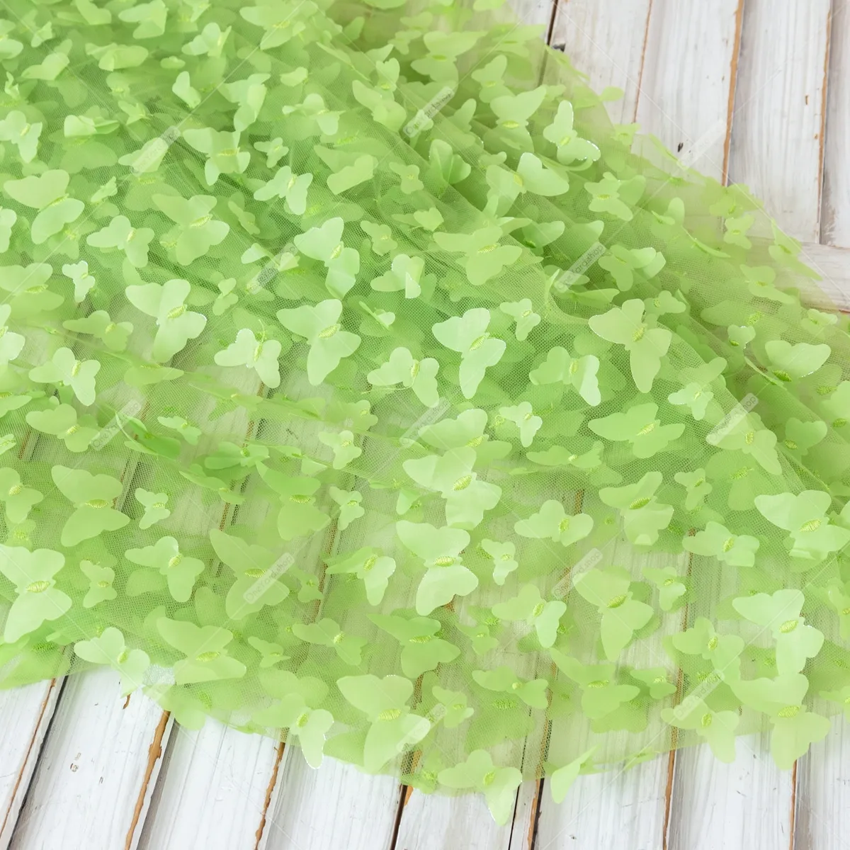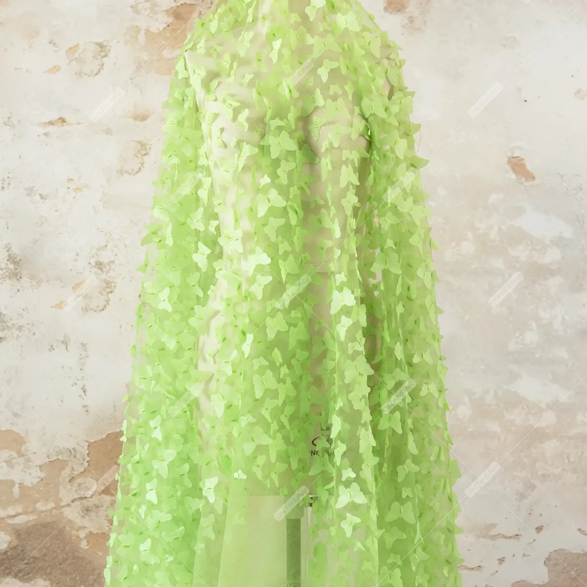 Vivid Green 3D Butterfly Embroidery Sheer Mesh Fabric