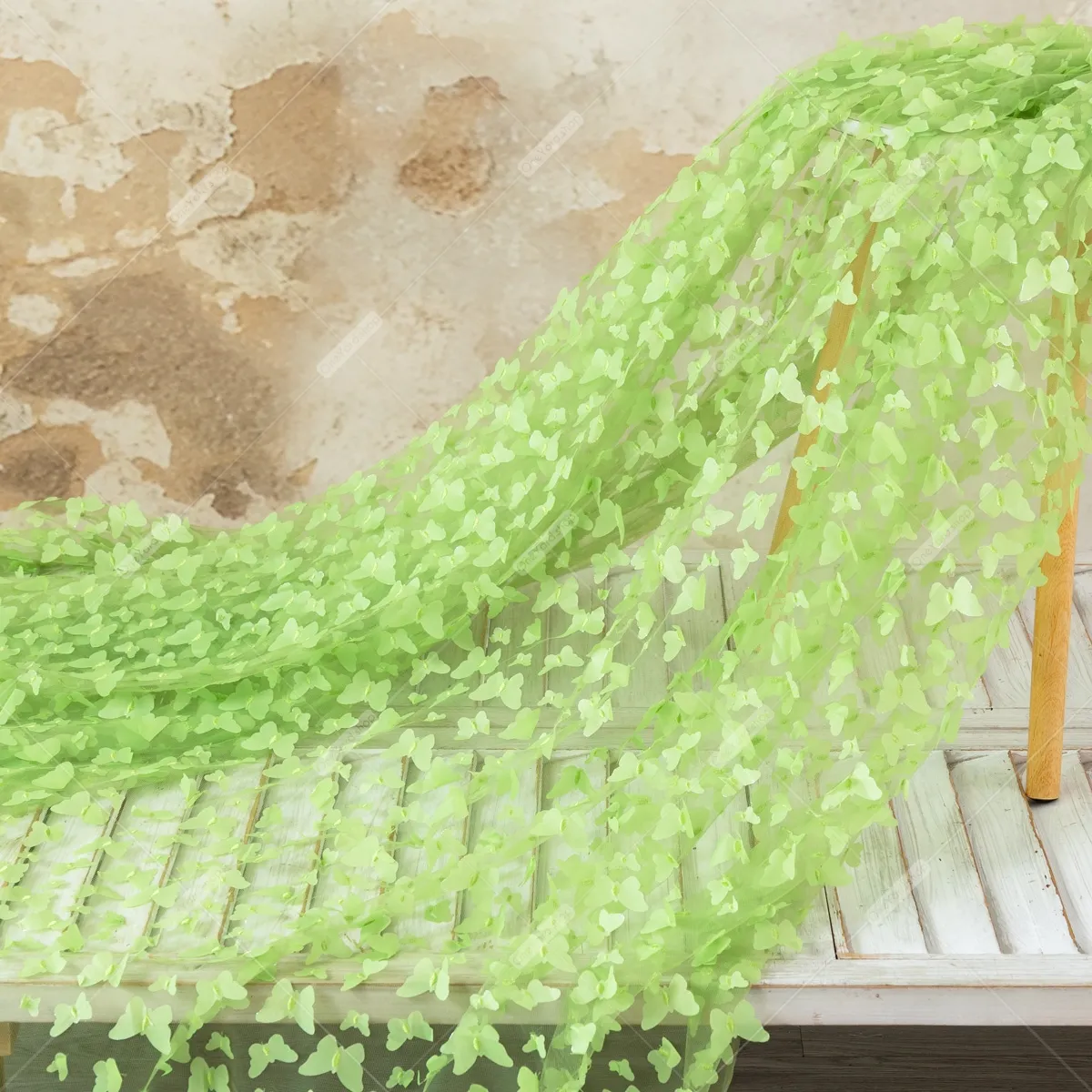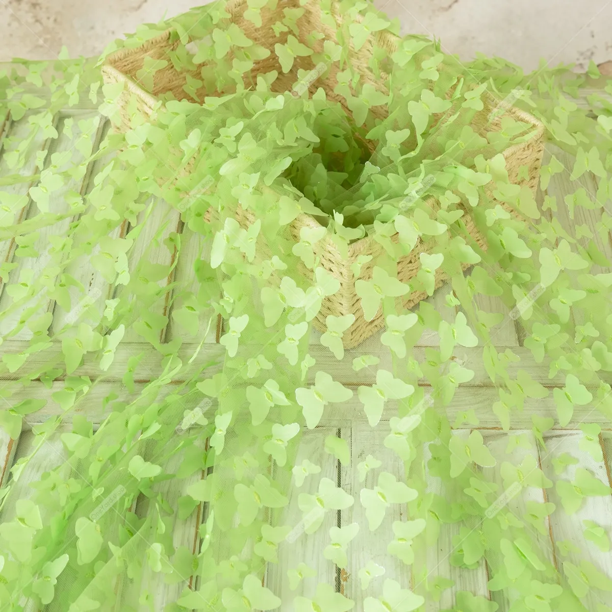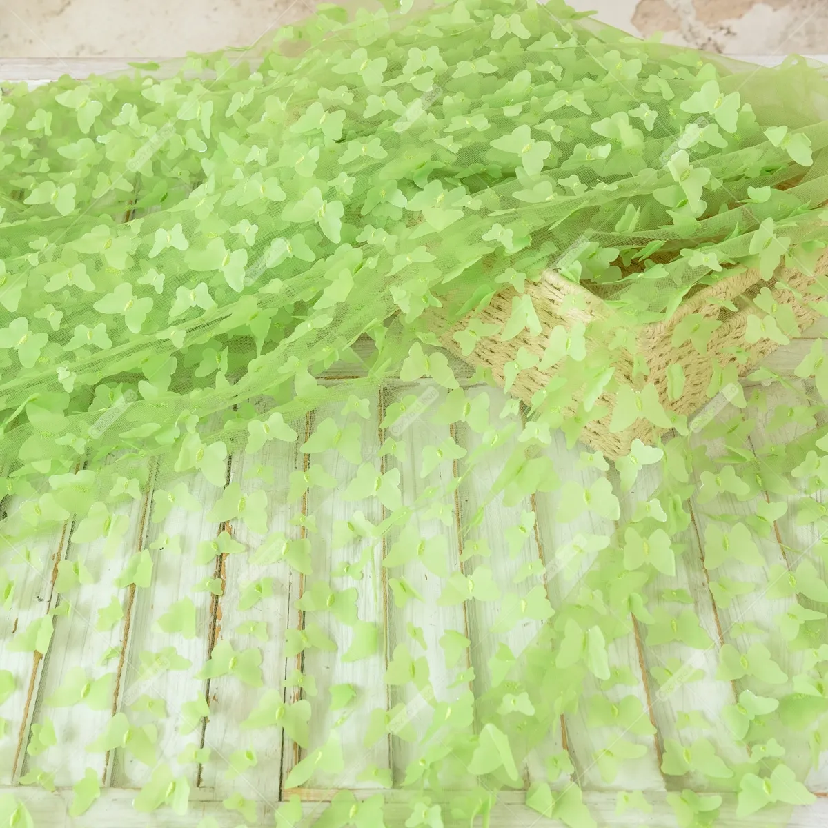 Vivid Green 3D Butterfly Embroidery Sheer Mesh Fabric